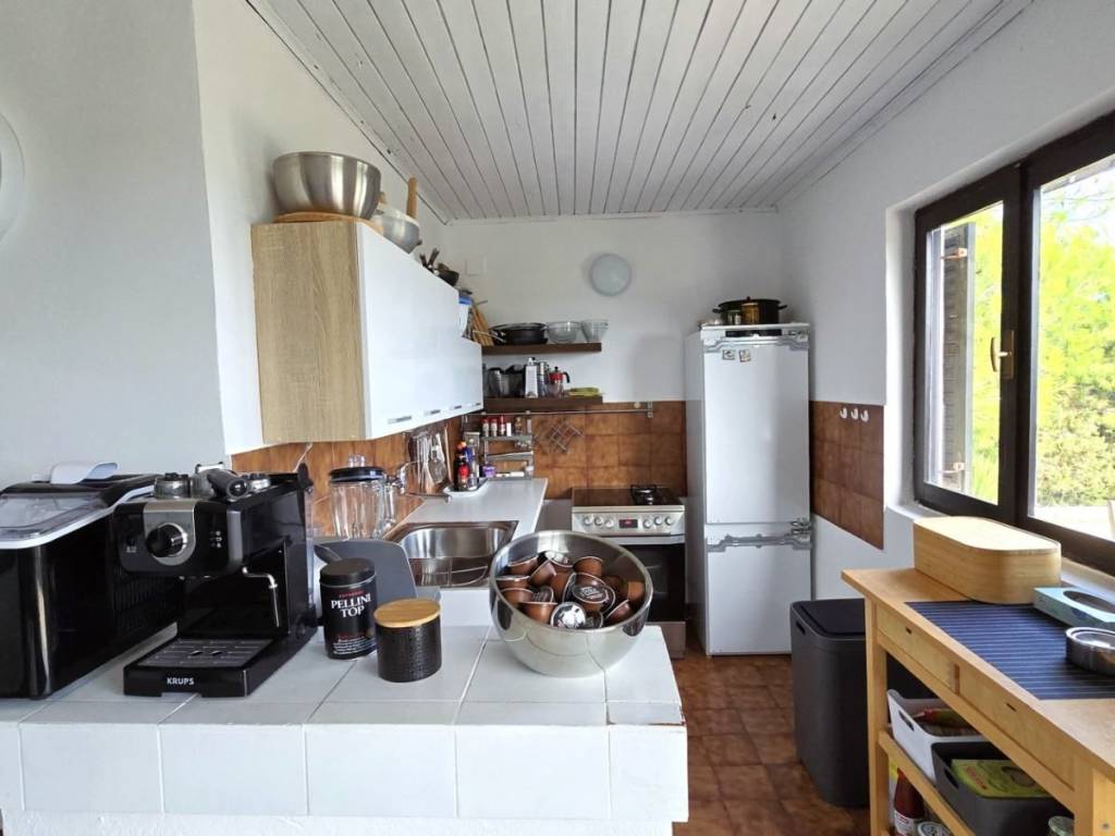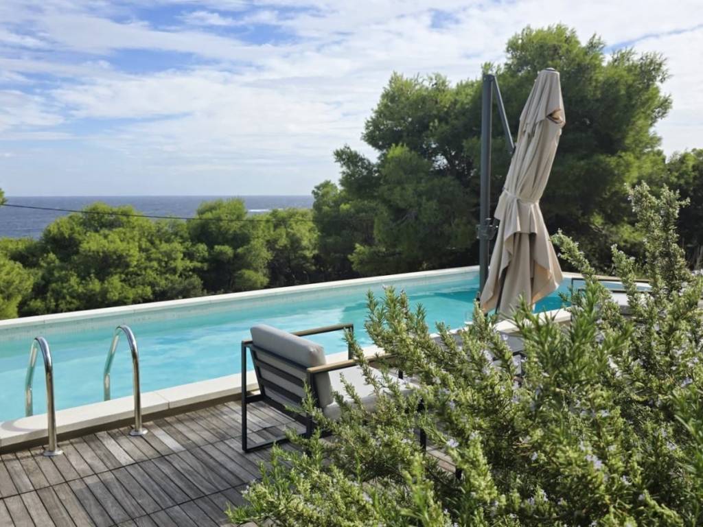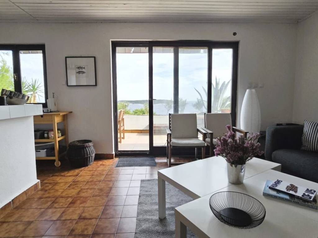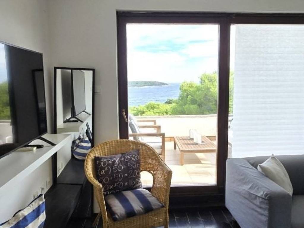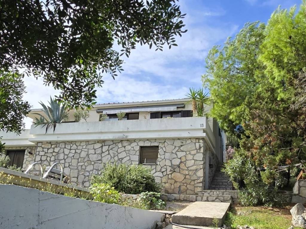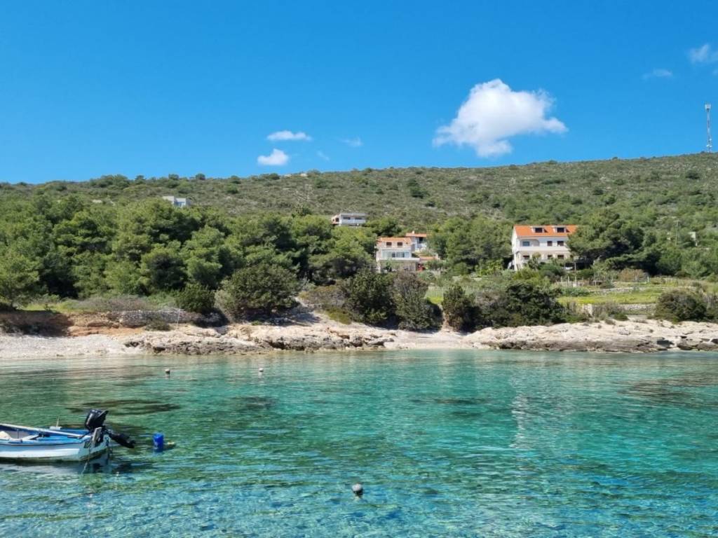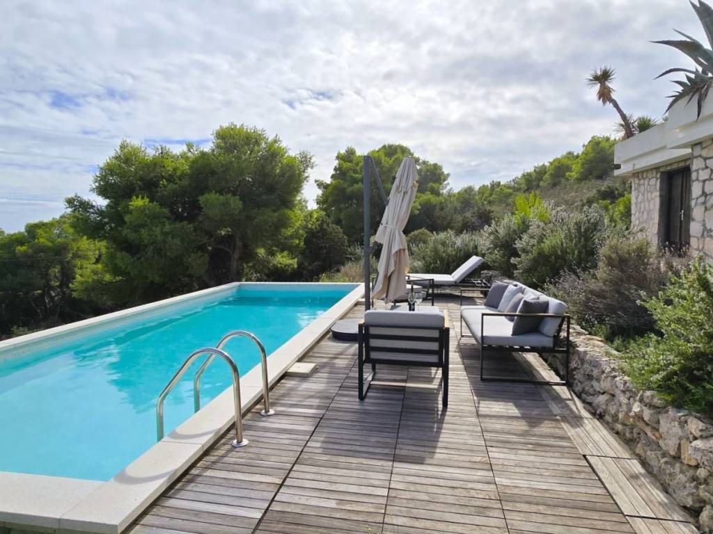 Lijepa trosobna komforna kuća površine 120 m2, smještena na prekrasnoj lokaciji u mjestu Brgujac na jugoistočnoj strani otoka Visa, na zemljištu od 860 m2, koja se sastoji od tri spavaće sobe, kuhinje s blagovaonicom i dnevnim boravkom, dvije kupaonice i velike terase sa otvorenim pogledom na more te dodatnom velikom donjom terasom s bazenom, ostava u podrumu, vanjski kamin, prilaz autom i veliki parking, potpuno namještena i opremljena, udaljena od mora cca 120 metara.