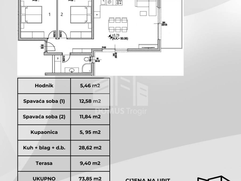 We offer for sale a two-room apartment on the first floor of a residential building under construction in Okrug Gornji.
