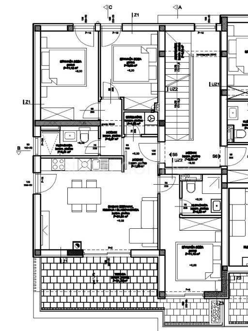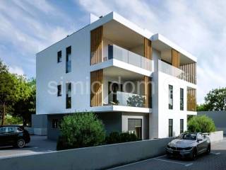 Apartments in a new building, for sale located in a prime location near the center and beach in Vodice. The beach is only 400m away, while the center is 700m away. The building is being built by a company with many years of experience in building quality residential buildings in the Sibenik area. The buyer does not pay real estate tax. The apartment marked SJ5 is placed on the second floor of the building and has a total internal area of 67m2 and an additional 21m2 terrace at the apartment level and a roof terrace of 80m2. With the included accessories and outdoor parking space, the apartment has a net area of 100.80m2. The apartment consists of a hallway, two bathrooms, three bedrooms, a laundry room and a kitchen with a dining room and a living area that has access to a spacious terrace, while the apartment also has a roof terrace with a beautiful view. Among the equipment in the apartments and the building, we highlight: fire-resistant entrance doors, white matte interior doors, PVC-GELANA exterior joinery with insulated glass, aluminium shutters, roller and side mosquito nets and electric opening of the shutters on all windows. Intercom - intercom, antenna system, underfloor heating in the bathroom, air conditioning with heating and cooling brand GREE or MIDEA with WI-FI (one unit on the outside, three units in the rooms, living room and kitchen one unit outside and one inside), 10mm ceramic floors, large dimensions, high-quality laminate 12 mm thick. The terraces will be enclosed by a glass fence made of tempered glass, while the building will have a connection (chimney) for a solid fuel stove. A parking space is included in the price with the possibility of purchasing an additional space. The expected completion of the works is summer 2026.