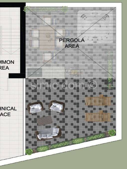 An apartment is for sale in a modern design building in a new building in Pakostane. The apartment is placed on the second floor of the building and has an internal area of 67 m2 and an additional 60 m2 of roof area. The beach is 800m from the building, while the nearest shop and cafe are a minute's walk from the building. Since the apartments are sold by a company, there is no real estate tax. The apartment consists of an entrance hall, two bedrooms, two bathrooms and a spacious living room with a kitchen and dining room. The apartment also has a beautiful roof terrace with a sitting area under a pergola, preparation for a jacuzzi, a summer kitchen and a sunbathing area. The apartment also has one outdoor parking space included in the price. The net area of the apartment with the coefficients of the terrace and parking space is 85 m2. At this stage, it is possible to choose the equipment, sanitary ware and ceramics in the apartment in agreement with the investor. The apartments will be equipped with a multi-split system and underfloor heating in the bathrooms, excellent sound and heat insulation, triple-layer insulated glass The investor also offers the option of professional tourist rental, apartment maintenance and marketing. The apartment is being sold at the stated price unfurnished. The price of the apartment with complete furniture is 399,990. Expected move-in is 12/2026.