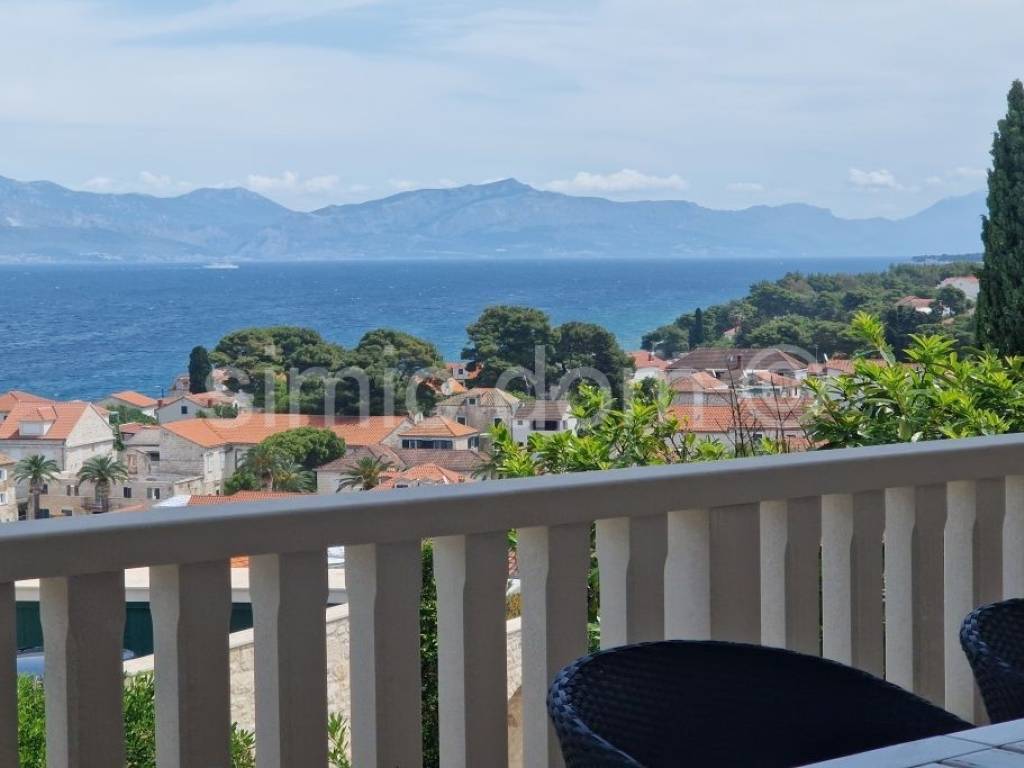 We are mediating the sale of a house in an excellent location with a panoramic view and a swimming pool, on the island of Brac. It is an apartment house registered as a business building. It is located on a plot of 450 m2 and has a total usable area of 205 m2. It extends over three floors: ground floor, first and second floor. The ground floor has a summer kitchen, storage room and a covered terrace. On the first floor there is an apartment consisting of a hallway, two bedrooms, bathroom, toilet, kitchen with dining room and living room and a covered terrace. The second floor consists of two almost identical apartments, consisting of a kitchen with dining room and living room and a bathroom. Also, both apartments have a spiral wooden staircase leading to part of the gallery where the sleeping area with a double bed is located. The entire house is surrounded by a beautifully landscaped and cultivated garden, and on the terraces, there is a swimming pool, barbecue, as well as a sunbathing and relaxation area. The plot has parking for at least three cars and has a neat access road. All the mentioned advantages, along with the proximity to the sea, make this property an excellent investment for the tourist rental business.