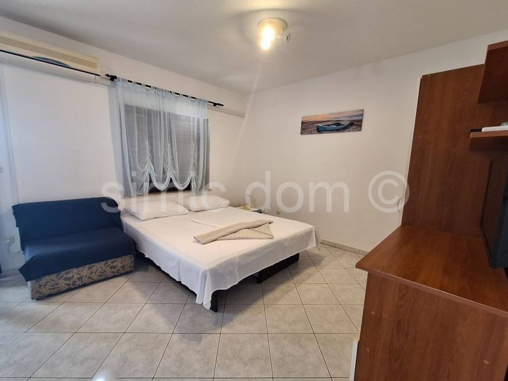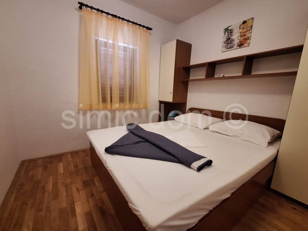 We are mediating the sale of a very charming apartment and studio located on the top floor of a semi-detached house in a quiet location on the north side of Ciovo (the entire floor is for sale). The total floor area of both apartments is 76 m2. The one-bedroom apartment has a bedroom with a balcony, a spacious living room with a kitchen, a bathroom and a very nice balcony with a beautiful view of the sea and the entire surrounding area. The studio also has a living room with a kitchen, a bathroom and a balcony. The apartments can also function as one unit because they are connected by a small hallway. The properties are sold furnished and equipped, so it is possible to immediately continue with the established rental business. The price includes a parking space. The yard is very nicely decorated and paved with typical Mediterranean vegetation. The house has a total of four floors, and in addition to the top floor, the lower two floors with the same layout are also available (one-bedroom apartment and studio). The sea and a beautiful beach are 300m away by road, and there are other amenities such as restaurants, cafes... This is an excellent opportunity for a rental business, but also for a quiet family destination. Ownership is in order.