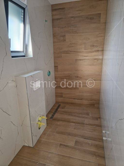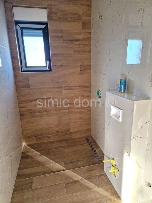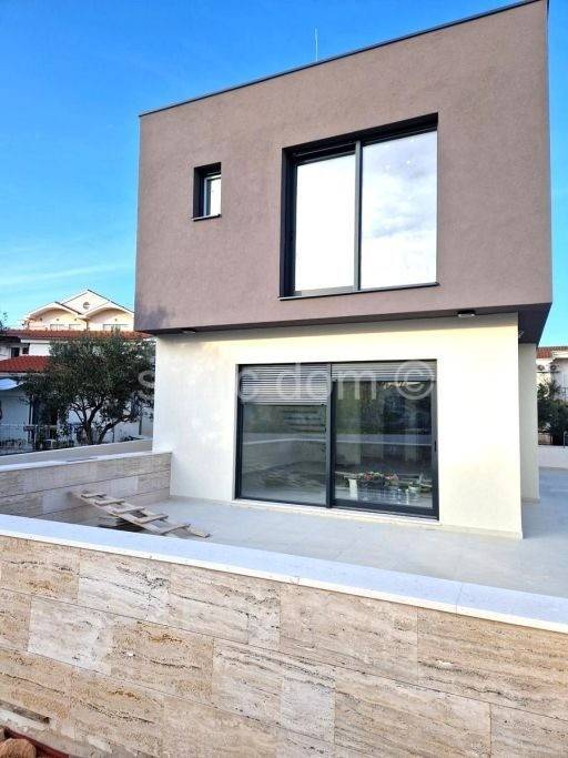 For sale is an excellent newly built house in a very attractive location just 250m from the beach and a 10-minute walk from neighbouring Vodice. It is a semi-detached, family house of modern design in a very quiet street with minimal traffic. The house has a usable area of 128 m2 and extends over two floors: ground floor and first floor, and has a 105 m2 yard with two parking spaces. The ground floor consists of a hallway, toilet, utility room, open-concept kitchen with dining room and living room that has access to the terrace and yard with swimming pool. On the first floor there are three bedrooms, two bathrooms and a storage room / laundry room. The house is built with extremely high-quality materials, equipped with security doors, ALU lift-sliding walls with electrically controlled roller shutters, mosquito nets, glass railings, electric underfloor heating in the bathrooms as well as in the kitchen and living room, each room with air conditioning and TV/SAT connection. Hot water heating is via a boiler located in the storage room, preparation for video surveillance for two external cameras. The stairs are cantilever (floating) steel structures with wooden cladding and anthracite-coloured steel rod railing. The 2.8m x 6.4m swimming pool is lined with ceramic mosaic tiles, and apart from the green part of the yard, the surroundings and parking lot will be paved with concrete pavement. Excellent location close to all amenities and quality construction make this property a really good investment.