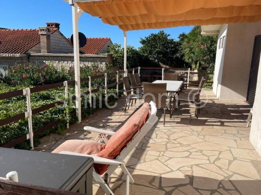 We are mediating a sale of a very charming house with two separate apartments in a peaceful location in a small town on the southern side of Peljesac. The house has an area of 103m2 and is located on a spacious plot of 600m2. The house is spread over the ground floor and first floor. There is one two-bedroom apartment on each floor. Each apartment, in addition to two bedrooms, also has a bathroom (the apartment on the ground floor has two), a kitchen, a dining room, a living room... The apartment on the ground floor opens onto a very rich and excellently maintained garden that hides three terraces (two paved, one pebble), a dining area and a barbecue. There is also a garden full of typical Mediterranean vegetation that provides shade and a very pleasant feeling of enjoyment in the peaceful location of this house. The house also offers one parking space. Given the rarity of houses this close to the sea, the beautiful location, and the neat and well-maintained condition, this is a house for both rental and family vacation. Ownership is neat.