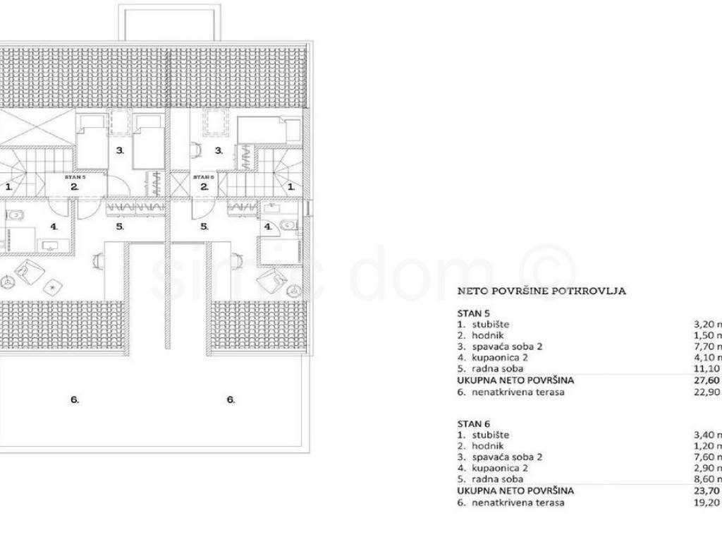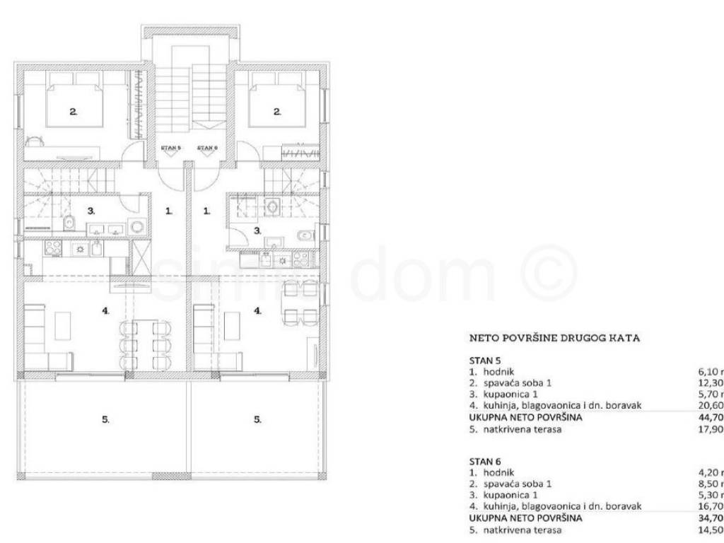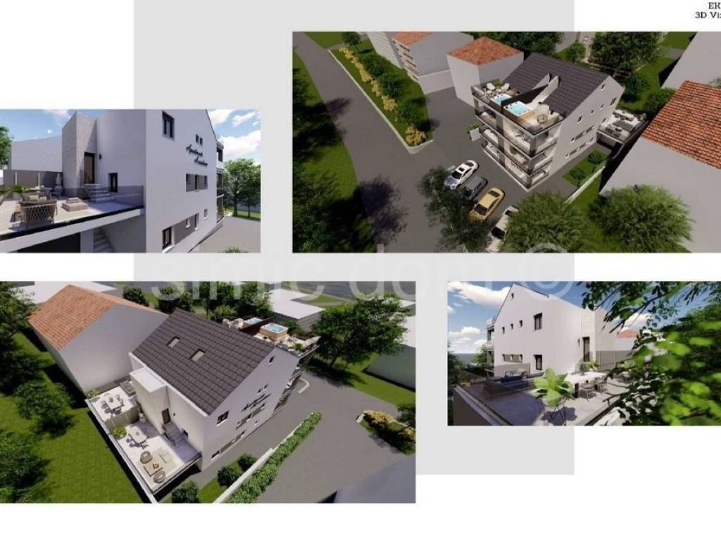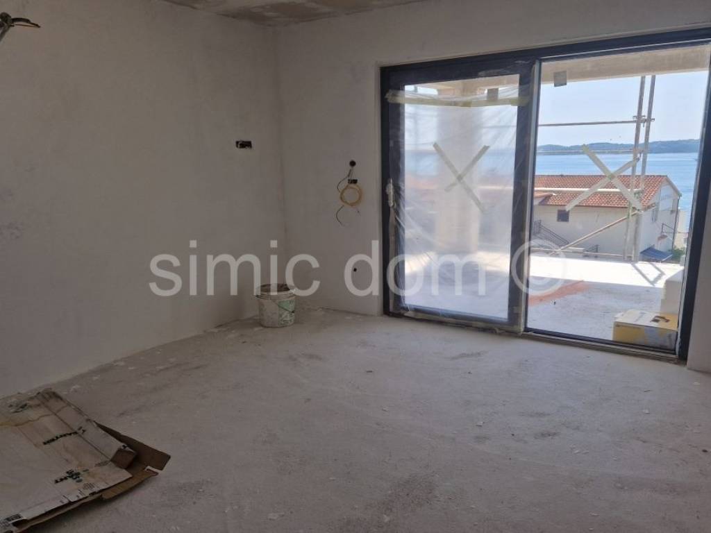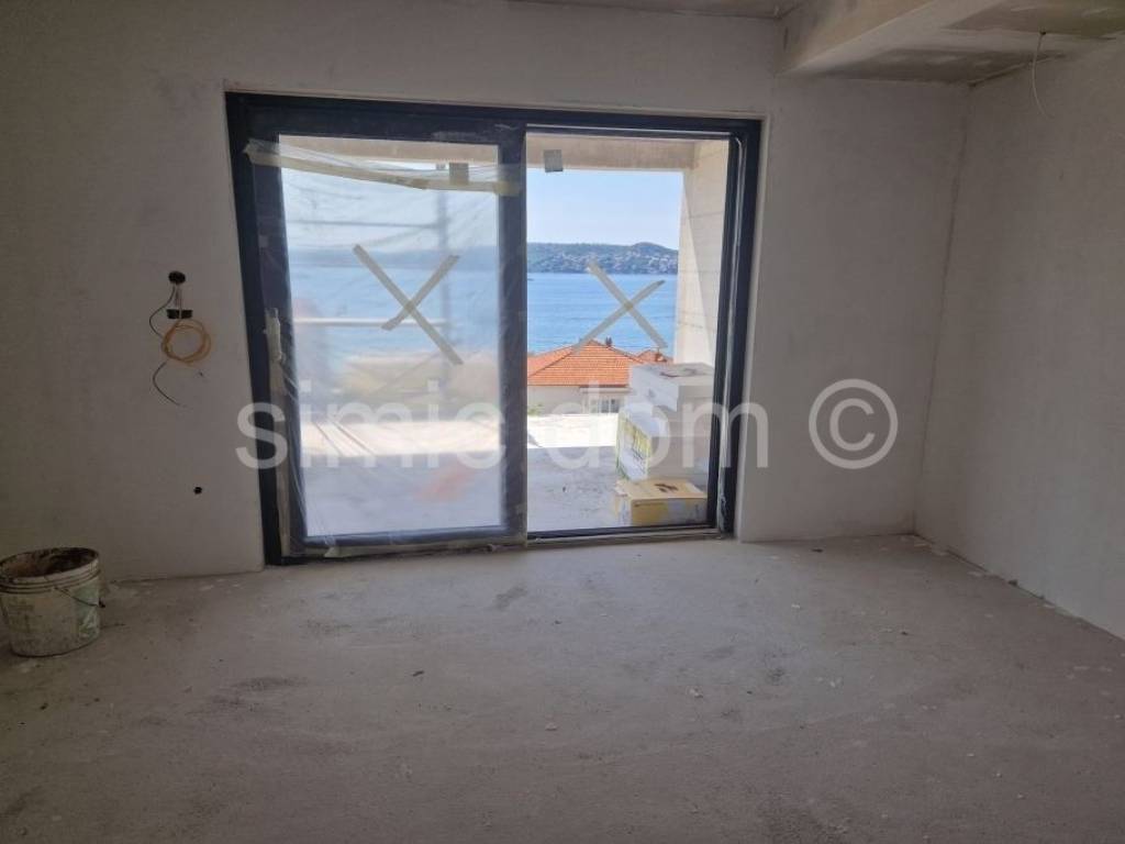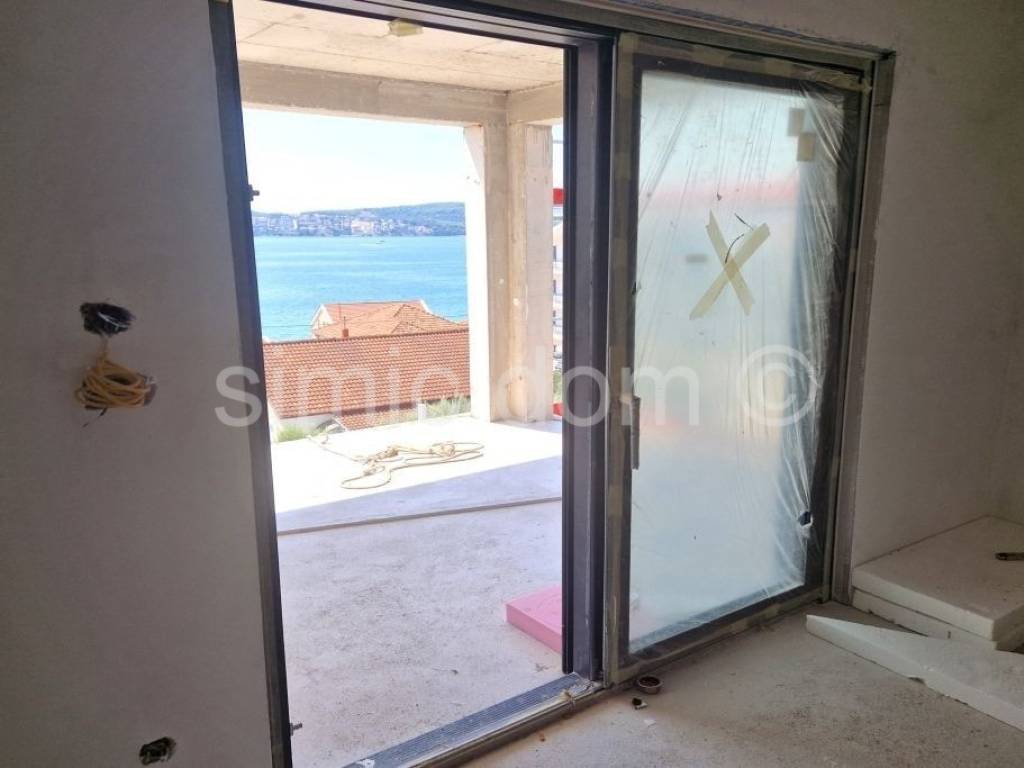 For sale is an excellent two-level apartment (S6) located in a smaller residential building in Seget, only 150m from the beach. The apartment is located on the second floor and has a net usable area of 74m2, i.e. a total floor area of 92m2. The interior area of the apartment is 58.40m2 and it consists on the lower floor of a hallway, a bedroom, a bathroom and an open-concept kitchen with a dining room and a living room that leads to a covered terrace of an additional 14.50m2 of floor space. On the upper floor there is another bedroom, a study, a bathroom and another uncovered terrace of 19m2 floor area, with a wonderful view of the sea. The apartment is sold on a turnkey system, which means a ready-made apartment without furniture, with a furnished bathroom, air conditioning, underfloor heating and ALU-PVC carpentry with triple-glazed windows included in the price. The apartment also has one parking space, which is a great advantage. The planned completion of the works is the summer of 2024.