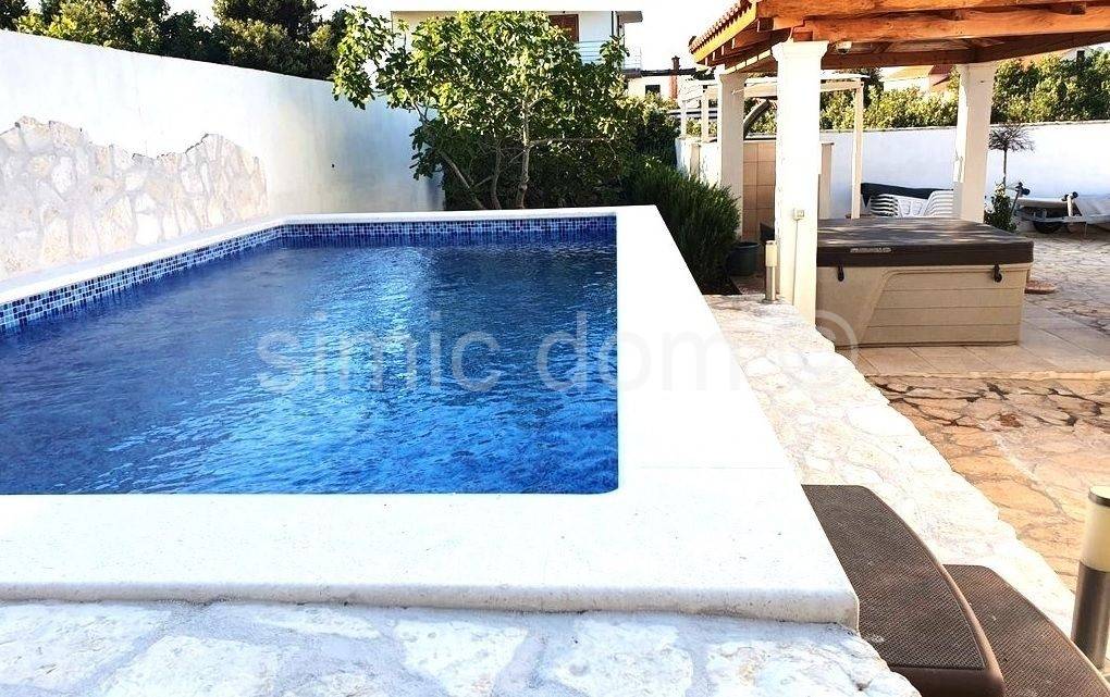 We are mediating the sale of a fantastic, very spacious property with many features located in the area of Rogoznica, in one of the most peaceful locations in the immediate vicinity of the sea. The villa is located on a plot of 524m2, and consists of a ground floor and an upper floor. On the ground floor is a very functional three-bedroom apartment with access to a charmingly decorated and very spacious terrace (35m2). On the first floor, there is a modern apartment with two bedrooms, a bathroom, a kitchen (fully equipped and of high quality) and a nicely equipped living room. This level of the house is additionally decorated with a spacious terrace that offers a calming view of the surrounding area. We especially highlight the real advantage of this villa: an additional paved garden that is arranged as a lounge area and offers a jacuzzi, sports facilities, a barbecue and a sun deck hidden from views. A large swimming pool has just been completed, which represents an ideal added value to the property. The carefully designed outdoor space also offers a smaller, covered facility that has a dining area and a fully equipped outdoor kitchen. Also, there is a stone house with chimney on the plot, charmingly decorated in traditional Dalmatian style. The entire plot is fenced and offers peace and privacy. The villa is well maintained and was regularly updated with new content. Therefore, this property offers a number of possibilities for renting, but it is also a unique opportunity for your vacation. The price also includes aboat and several boat moorings. Ownership in order.