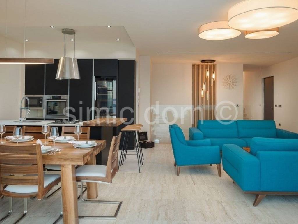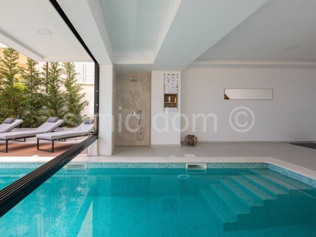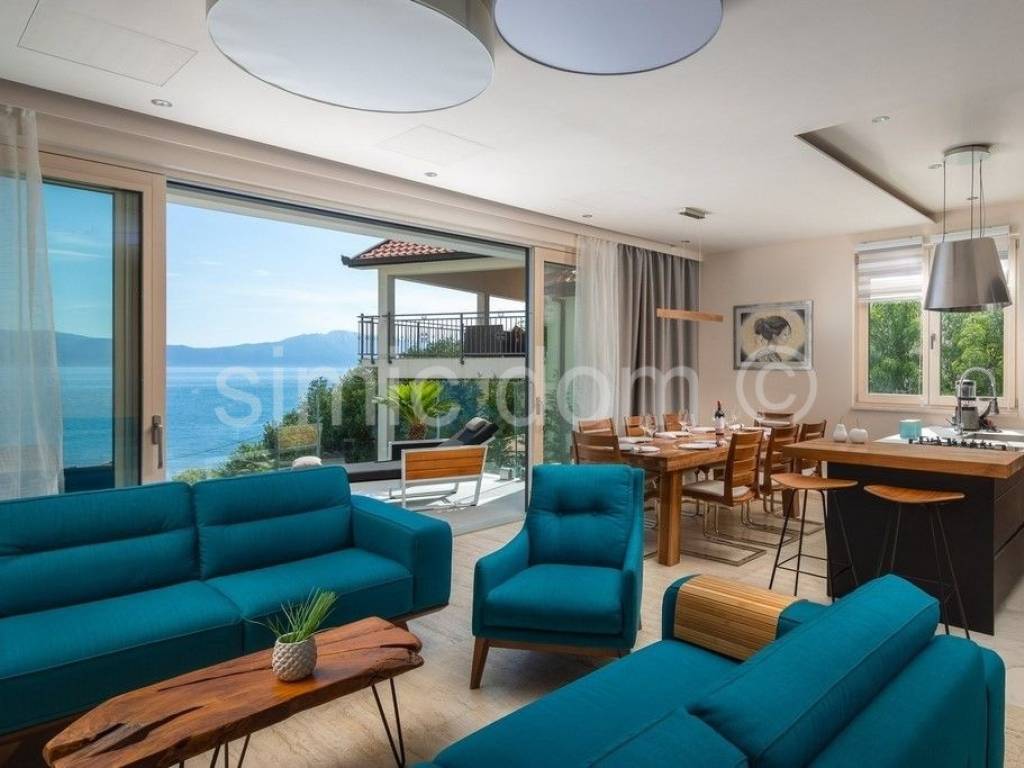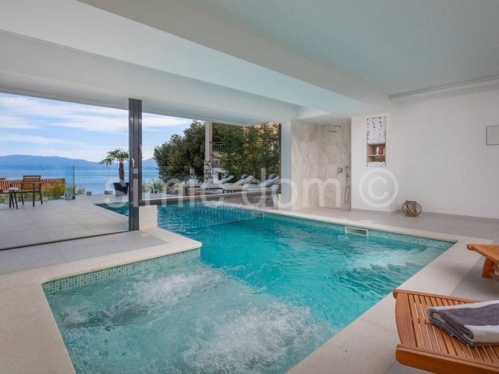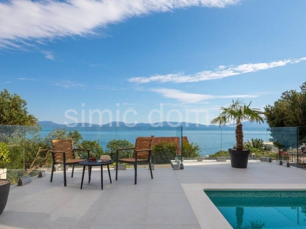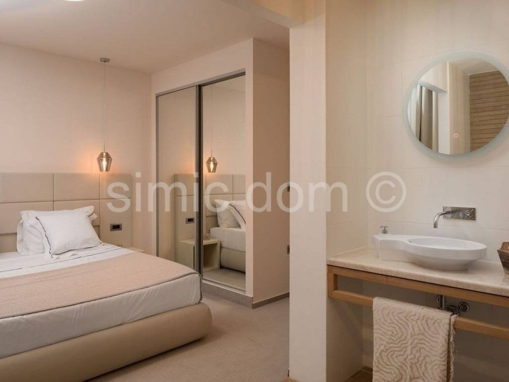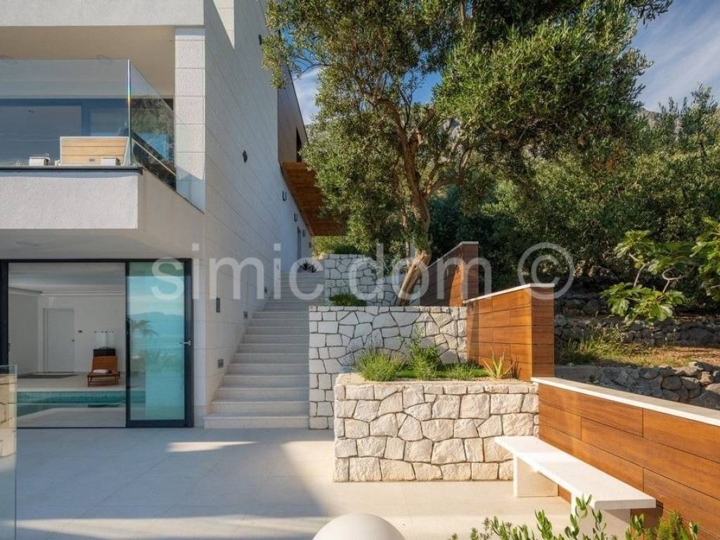 We are mediating the sale of a beautiful, very luxurious and spacious villa located only 80m from the sea and the famous beaches of this region. The area of the villa is 300m2, and it is located on a plot of 379m2. The villa consists of a basement, a ground floor and the first floor. On the basement floor, there is a space designed as a spa area with a sauna and a heated pool that can serve as both a summer and winter pool because the structure that divides it is movable. The ground floor consists of a very nice and large living room with a kitchen and dining room, an additional toilet and a spacious bedroom with its own bathroom. From the living room you can access a truly impressive balcony with an incredible view of the sea. An internal staircase leads to the first floor with three en-suite bedrooms, two of which share a balcony also offering views. The villa was built exclusively with the highest quality materials, and among other facilities we highlight underfloor heating throughout the villa with heat pumps, its own heating and cooling system, a solar system, excellent ceramics for outdoor surfaces as well... Equipped with the highest class household appliances and luxuriously furnished (custom with handmade) furniture, this villa is a real example of true luxury right next to the sea and as such represents a real investment opportunity. The villa is also surrounded by a beautifully cultivated garden (garden with Mediterranean plants, parking area...) which makes the entire property a well-rounded story. Ownership in order.