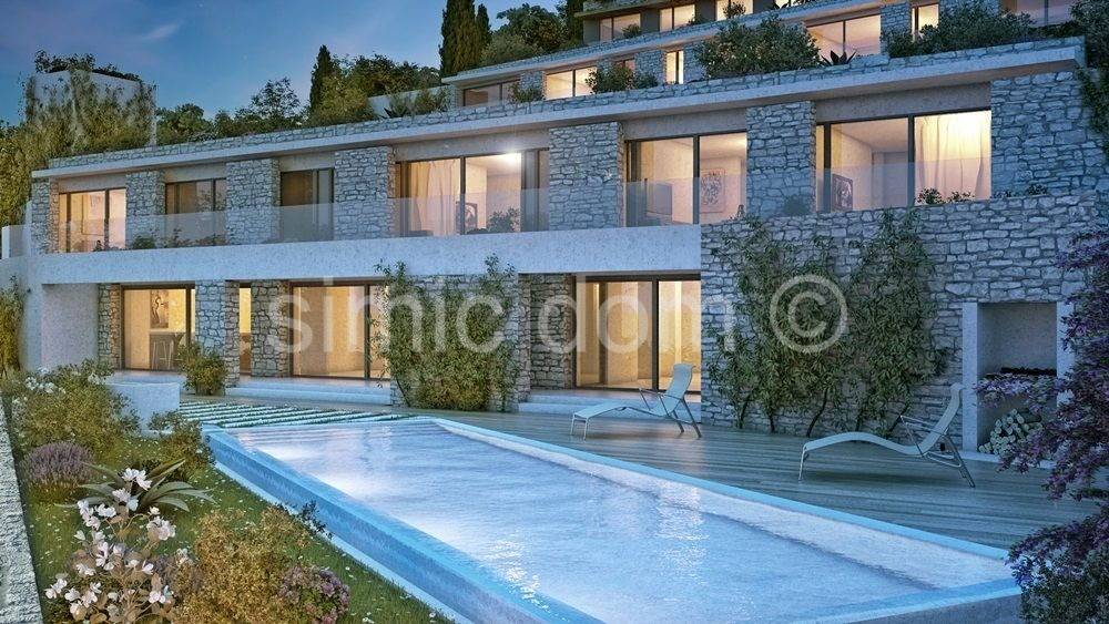 Na prodaju je građevinsko zemljište površine 5330 m2, smješteno nedaleko od Dubrovnika, s predivnim pogledom na more. Projekt podrazumijeva kompleks od četiri luksuzne vile, svaka sa 4-6 soba, uz dodatni luksuzni i moderni sadržaj kao što su bazen, jacuzzi, saune, prostor za roštilj i mnogi drugi. Vile površina od 148 do 448 m2 sastoje se od dvije etaže - prizemlja i prvog kata. U prizemlju se nalaze bazen i opremljeno sunčalište, ulazni dio, kuhinja, blagovaonica, dnevni boravak, wc, zatvoreni zeleni vrt, predvorje, wellness zona s jacuzzijem i saunom. Na etaži prvog kata su spavaće sobe sa, ovisno o vili, terasom ili loggiom. Podzemna površina osigurana je za odgovarajući broj parkirnih mjesta za svaku vilu i prateće objekte. Zemljište se nalazi na udaljenosti od 1 km od mora, a svojom atraktivnom lokacijom čini idealnu oazu mira i privatnosti.