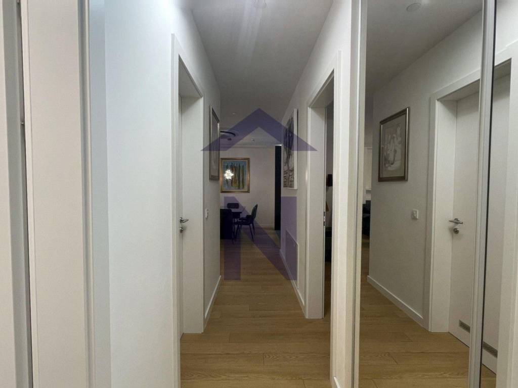 Sastoji se od: hodnika, dnevnog boravka s kuhinjom i blagovaonicom i prostran loggie, 3 spavaće sobe, 2 kupaonice te vešeraja.