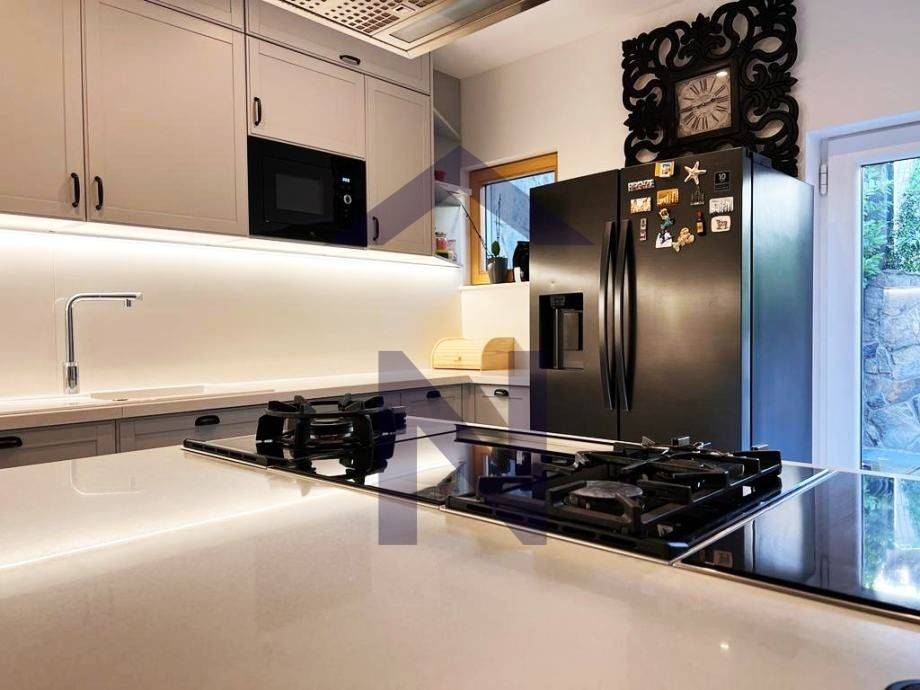 Zgrada je kvalitetne izgradnje, iz 2019. godine. Stan ima centralno etažno plinsko grijanje, klime, videonadzor, alarmni sustav, garažna daljnska vrata Horman, lift Schindler, natkrivena lođa, vrt, dvije terase, aluminiske električne rolete, protuprovalna vrata puno drvo jasen, stolarija renomiranog proizvođača Internorm - troslojna izo stakla, prvoklasna talijanska keramika, puni parket jasen, prestige kuhinja 10 metara.
