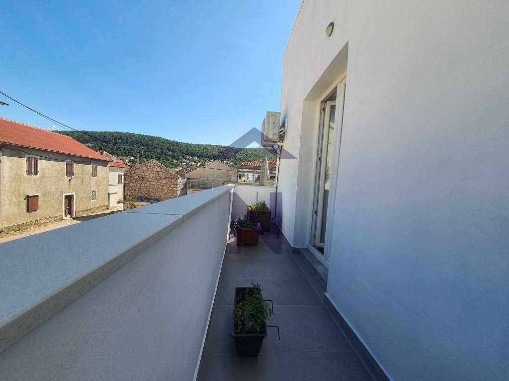 Potkrovlje se sastoji od stana sa jednom spavaćom sobom, kupaonicom, kuhinjom i dnevnim boravkom ukupne površine 30m2 i terase 20m2.