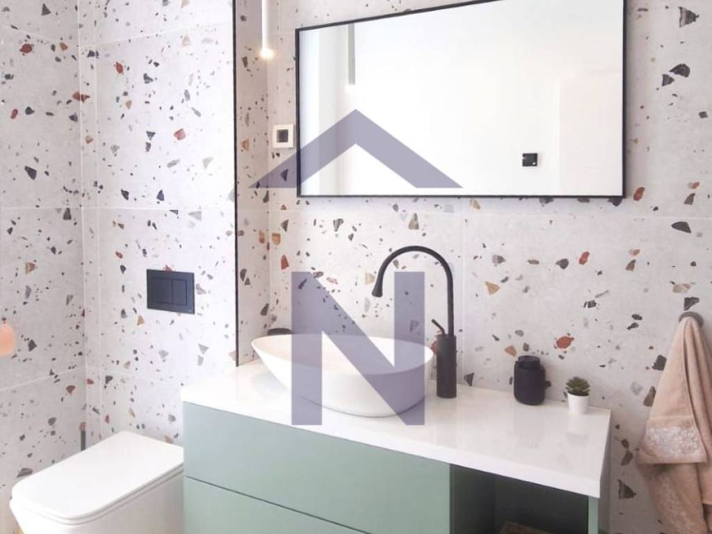 Das Erdgeschoss hat einen keramischen Fußboden, und die Zimmer haben ein dreischichtiges Parkett. Das Erdgeschoss und der erste Stock sind durch eine hochwertige Eisentreppe verbunden.