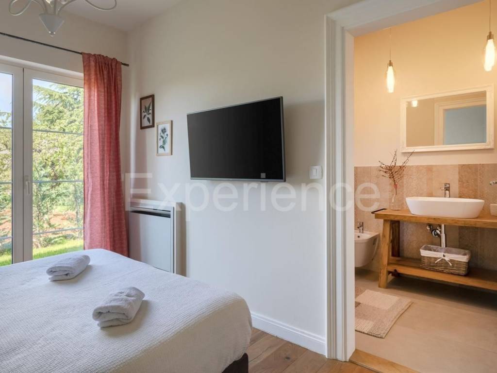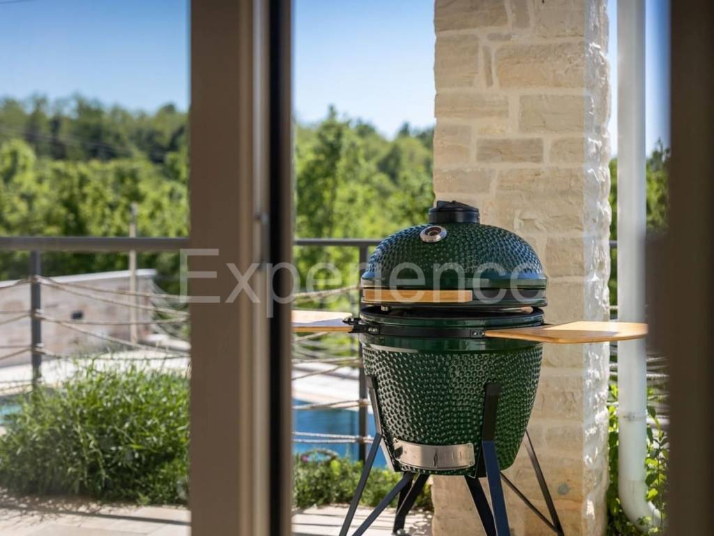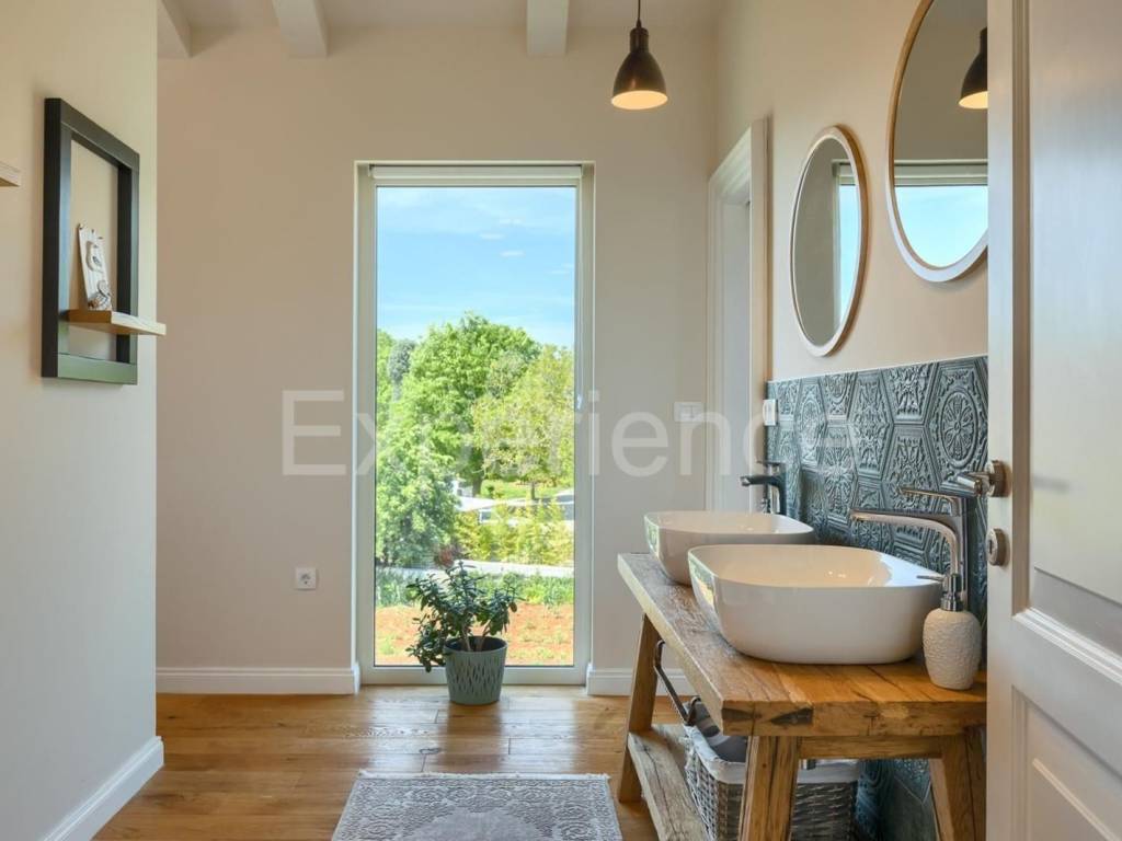 Luxury Rustic-Modern Villa with Pool and Panoramic View Near Poreč In a peaceful Istrian village just a few kilometers from Poreč, this exclusive newly built villa offers a perfect blend of rustic elegance and modern comfort. With a total area of 179 m, built in 2021, the villa is set on the edge of the village and the construction zone, providing maximum privacy and a wide panoramic view of unspoiled nature. Interior Warmth and Functionality Combined Spread over two floors, the villa is fully furnished with high-quality rustic furniture, featuring: