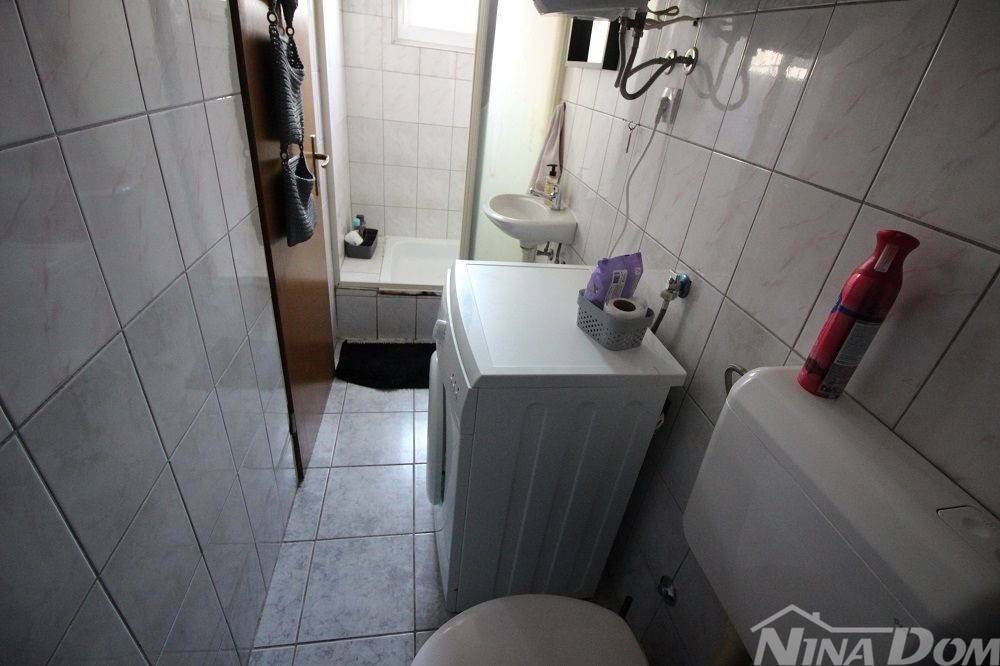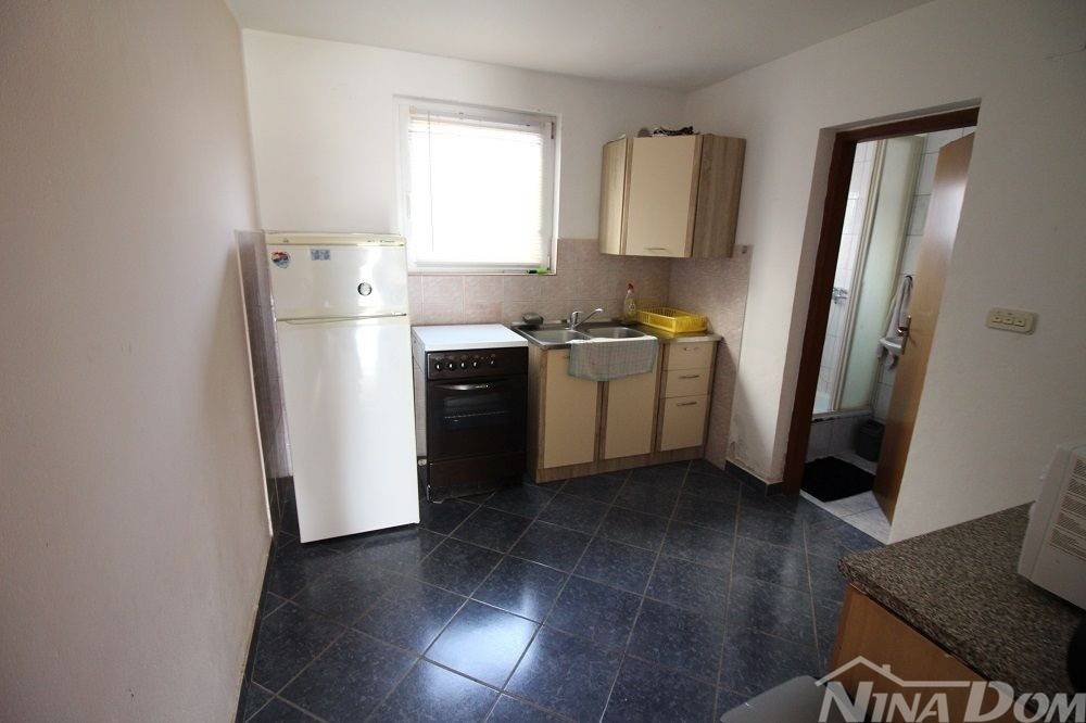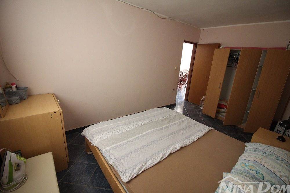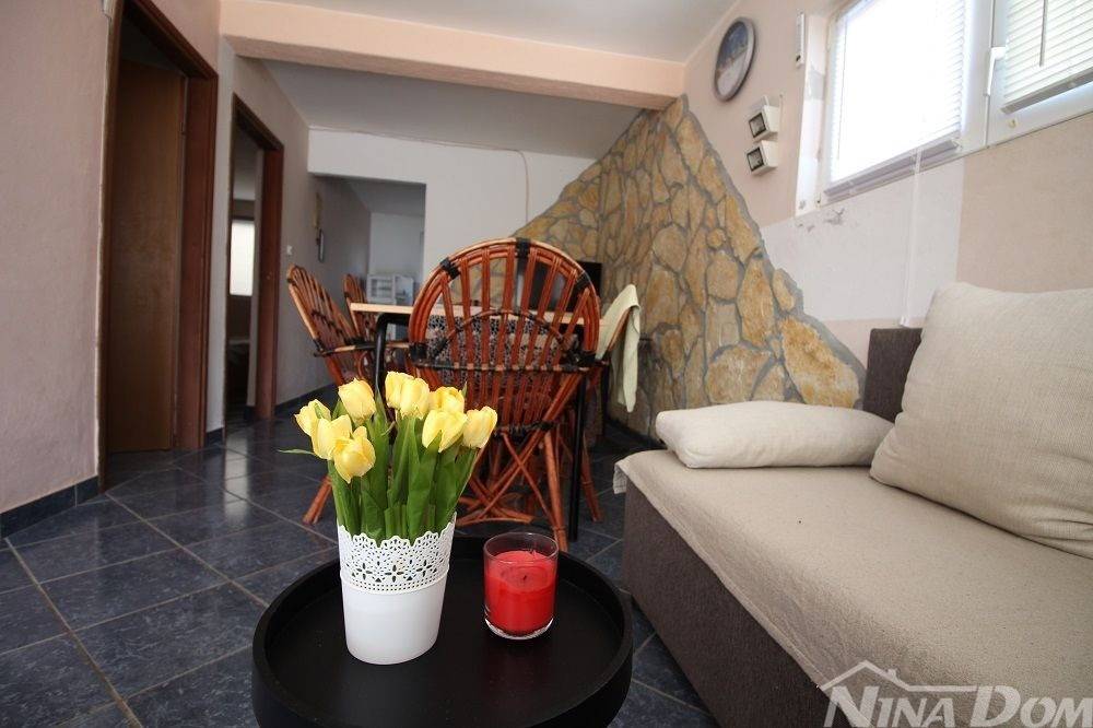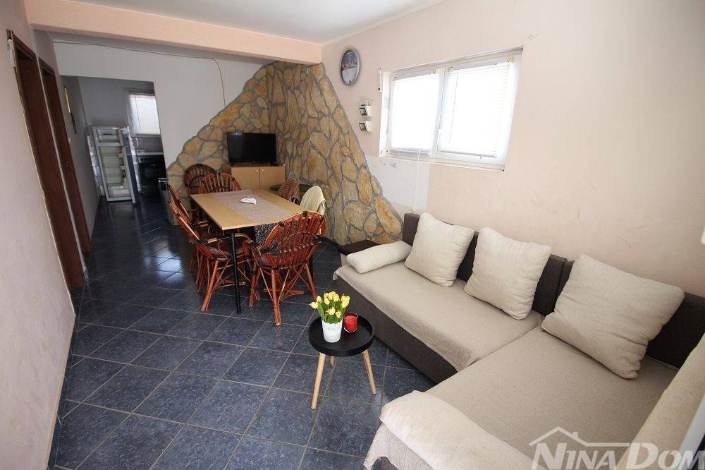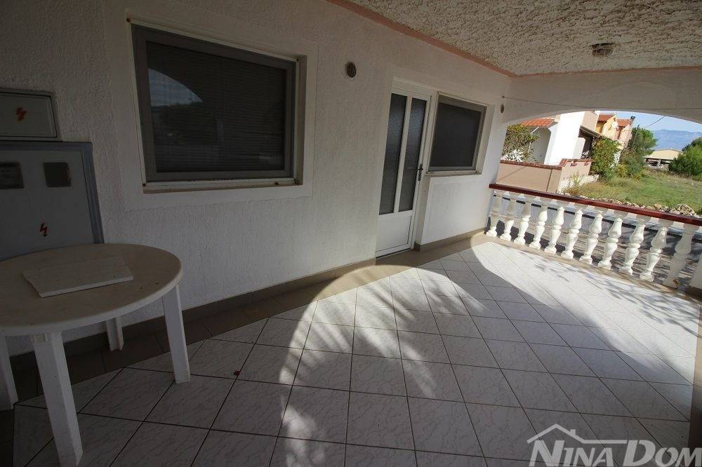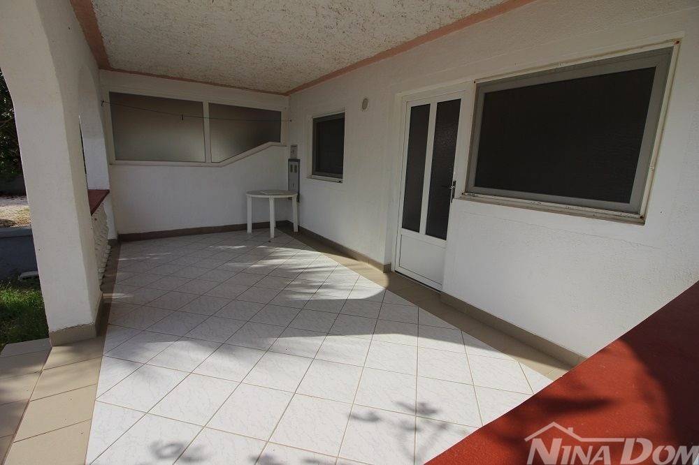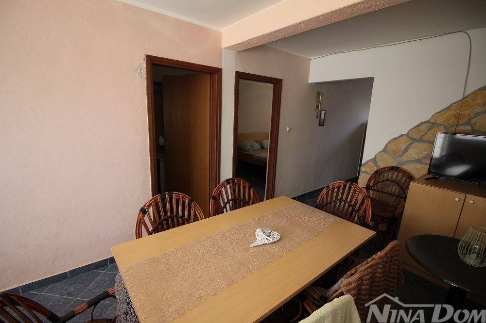 Apartman u prizemlju s parkirnim mjestom. Sastoji se od natkrivene terase, dnevnog boravka s blagovaonicom, kuhinje, kupaone, dvije spavaće sobe. Apartman je ukupne korisne površine 68 m2. Od mora i plaže udaljen je 270 metara, plaža prilagođena svim dobnim skupinama i lijepo uređena s dosta sadržaja (kafići, restorani,trgovina ) svi potrebni sadržaji nalaze se u krugu 200 metara. Aparman je legaliziran ( nije etažiran). Prodaje se u suvlasničkom omjeru bez tereta i hipoteke.