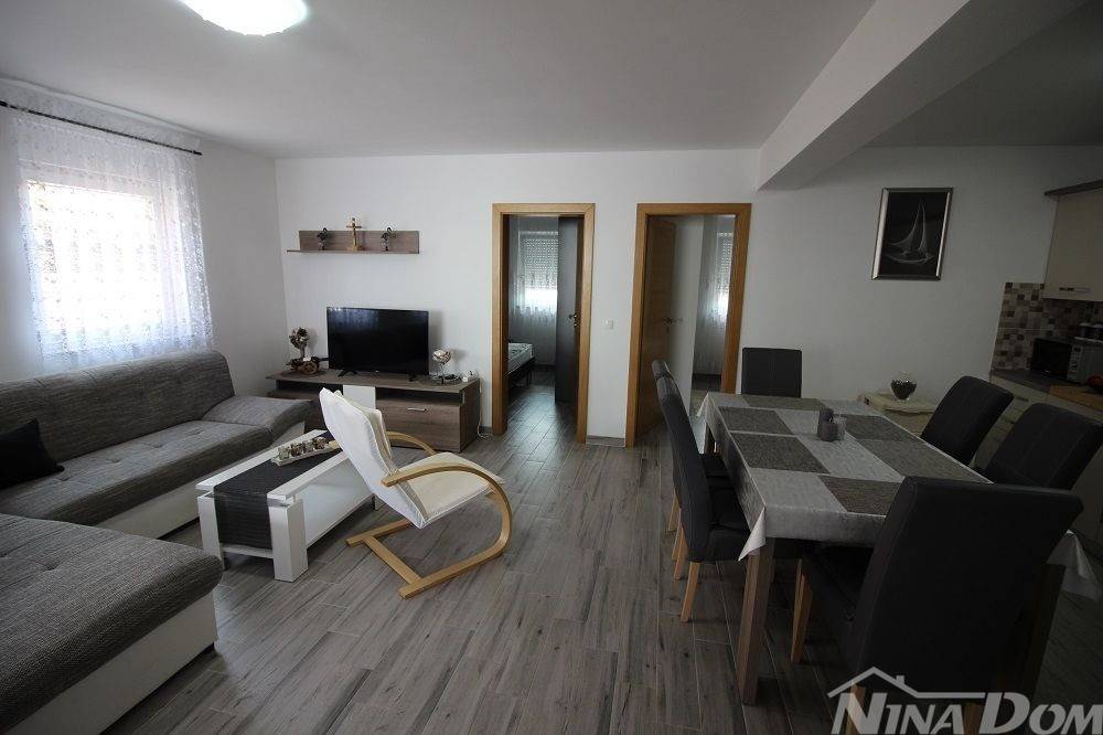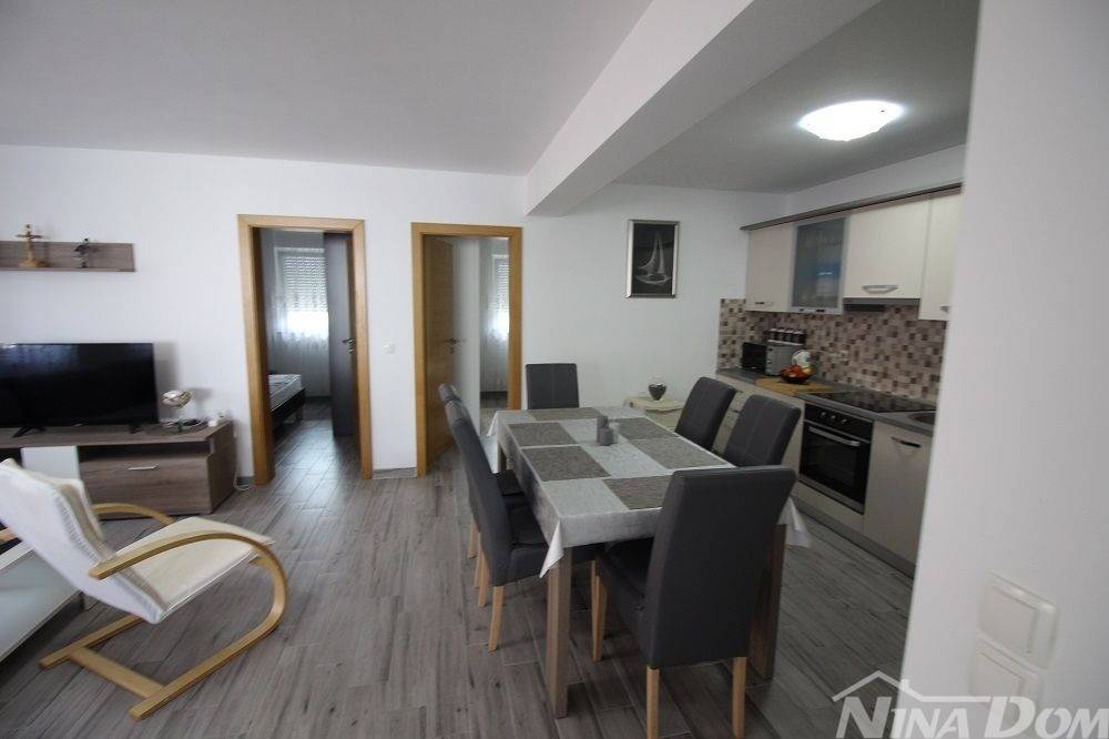 Apartman na prvom katu zgrade koji se sastoji od kuhinje s blagovaonicom i dnevnim boravkom, kupaona, dvije spavaće sobe korisne površine 56,36 m2 + lođa 8.80 m2.