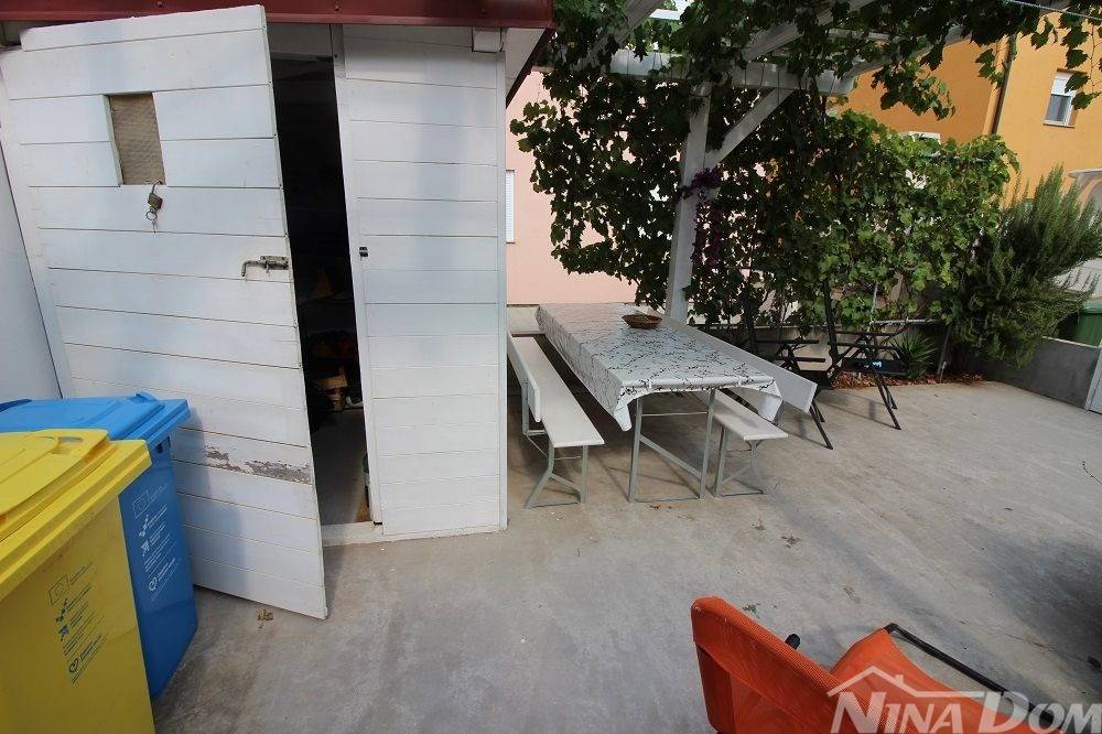 Pripadci apartmanu su parkirno mjesto ispred zgrade i vrt s sjenicom iza zgrade veličine 32 m2.