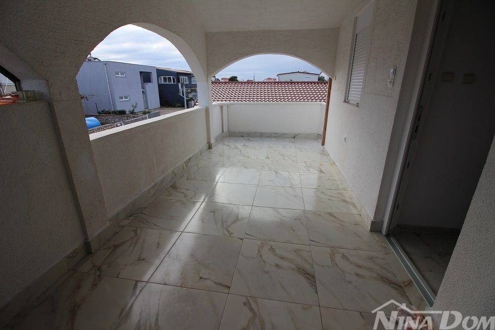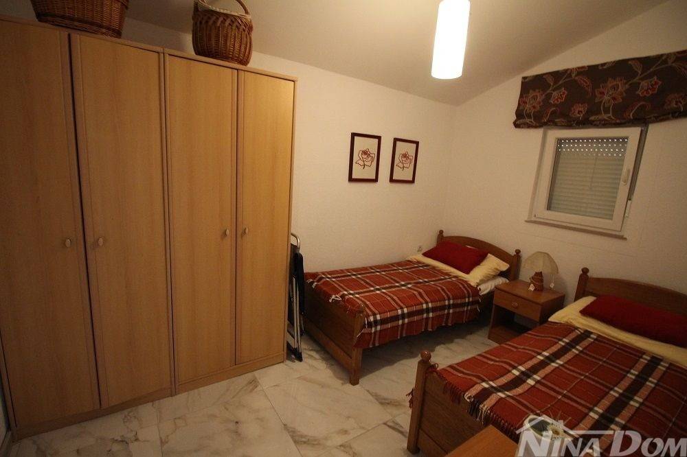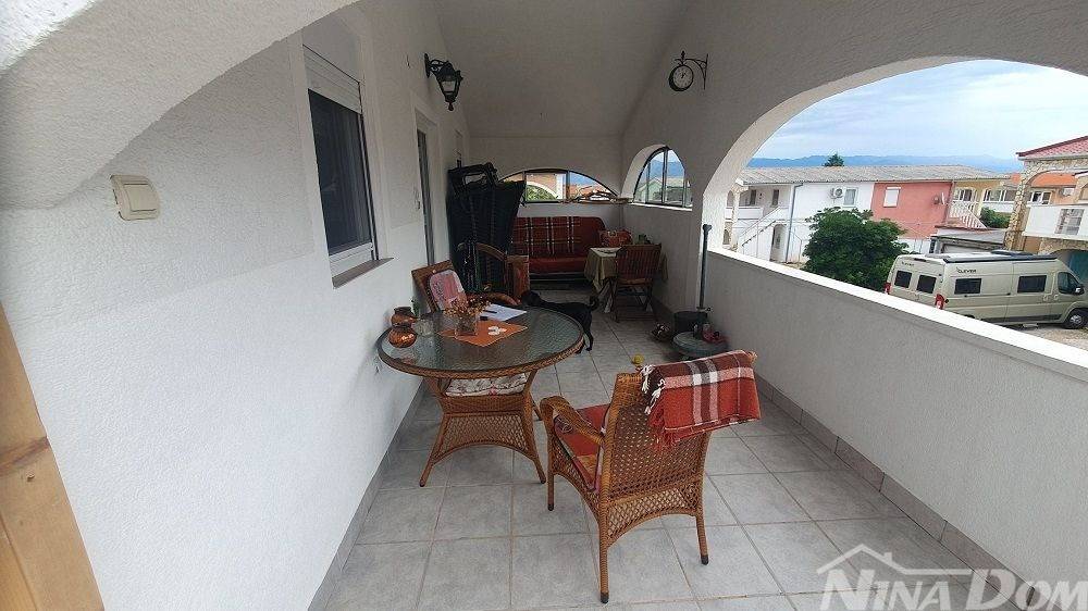 Apartman na prvom katu, sastoji se od stubišta, natkrivene terase, hodnika, tri sobe od kojih dvije spavaće, jedna se koristi kao dnevni boravak, kuhinja, kupaonica.