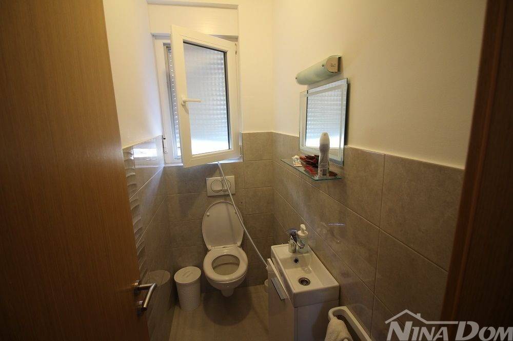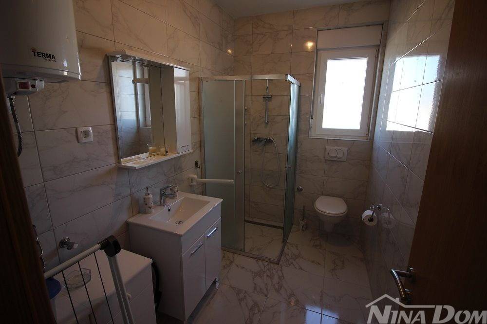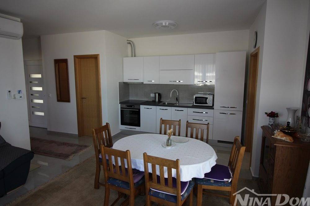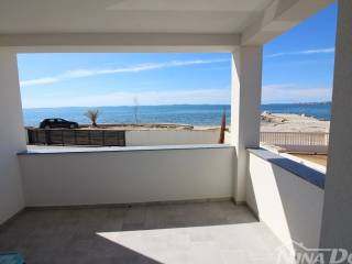 Apartman u prizemlju prvi red do mora. Apartman se sastoji od hodnika, dvije spavaće sobe, kupaone, wc-a, kuhinje s blagovaonicom i dnevnim boravkom, špajz, natkrivena terasa s otvorenim pogledom na more. Apartman je prikljkučen na gradski vodovod i kanalizaciju, klimatiziran. Nekretnina je izgrađena 2022 godine, kompletno opremljena i trenutno služi u svrku turističkog najma. Pripada mu parkirno mjesto i dio vrta po etažnom elaboratu.