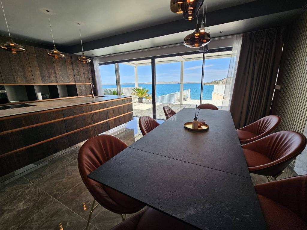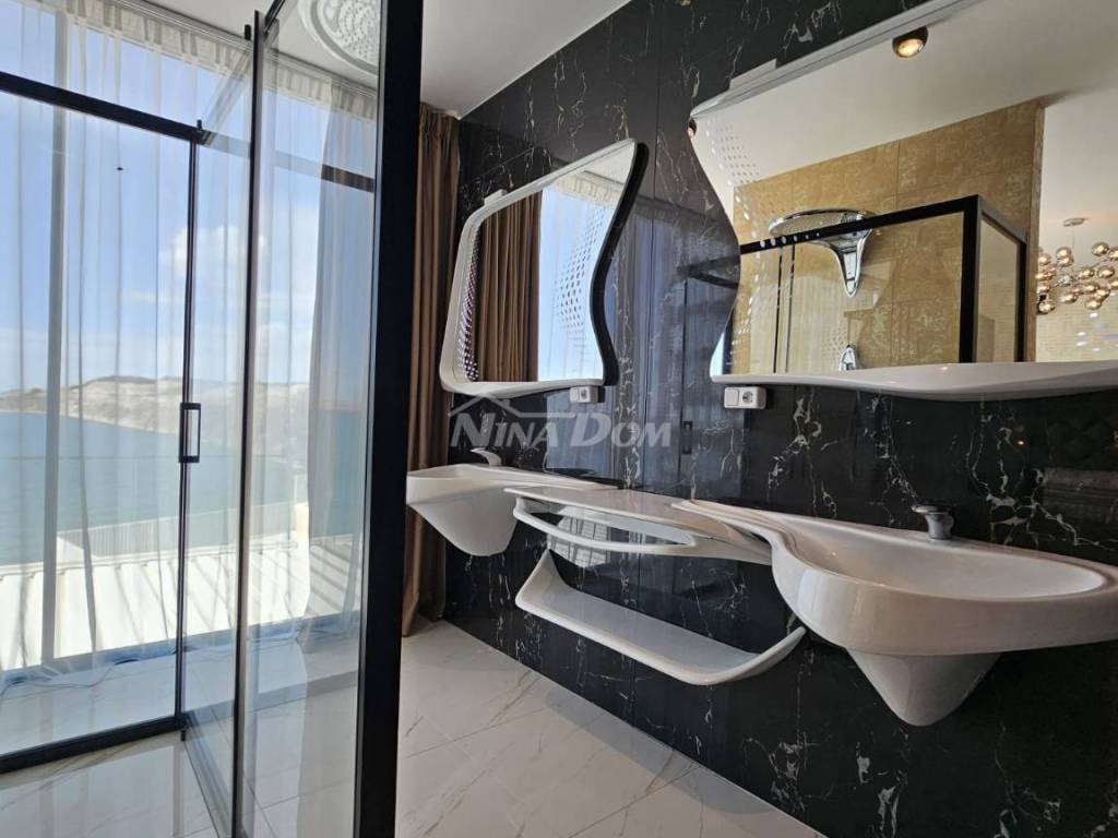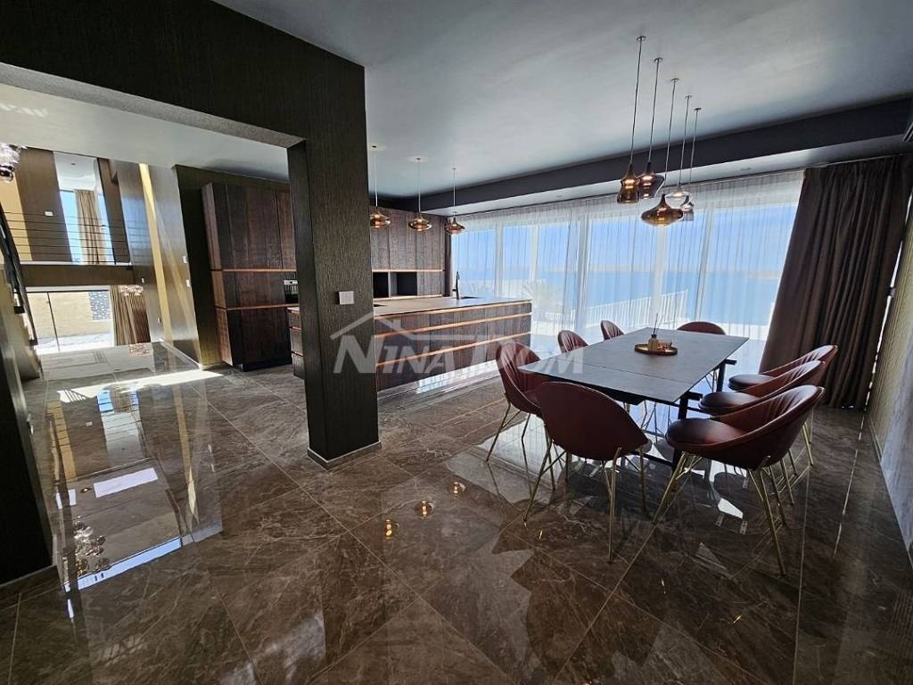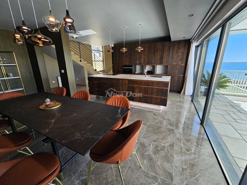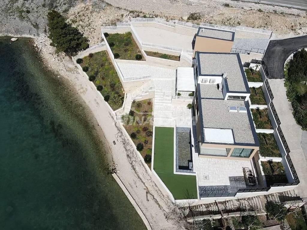 Prodaje se dizajnerska vila na samoj plaži.Kuća je građena od visoko kvalitetnih,probranih materijala.Cortizo automatska alu stolarija,auto atske zavjese,Versace pločice,tapete itd,Bang and Olufsen iitd.Sastojj se od dva odvojena dijela.Prvi dio se sastoji od garaže i studio apartmana,namijenjenih za poslugu ili goste.Drugi ,glavni dio se sastoji od atraktivnog ulaza,hodnika,stubišta, iz kojeg se pruža pogled na prekrasno ,razvedeno stubište.U prizemlju se nalaze dnevni boravak,prostor za relaksaciju,wc,praona rublja sa tehničkim dijelom,te kuhinja sa blagovaonom.Valja napomenuti da se iz svih prostorija pruža prekrasan pogled na očaravajući krajolik.Na katu se nalaze četiri spavaće sobe od kojih,dvije sa vlastitim kupatilom,dok ostale dvije dijele treće kupatilo.S vanjske strane se nalazi ostava za vrtni namještaj te bazenska pomagala.Na prostranoj okućnici se nalazi bazen sa tušem.Sa prekrasne terase se spušta vlastitim stepenicama na prekrasnu plažu i malu lučicu kojoj se nalazi privatni vez za brodicu.Za sva dodatna pitanja i obilazak,stojimo vam na raspolaganju.