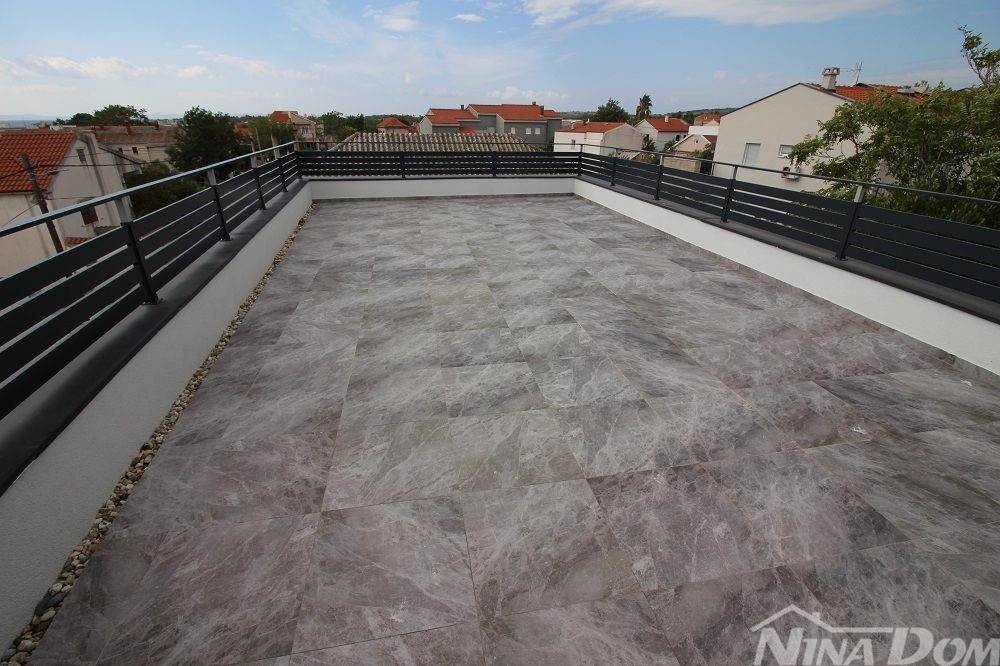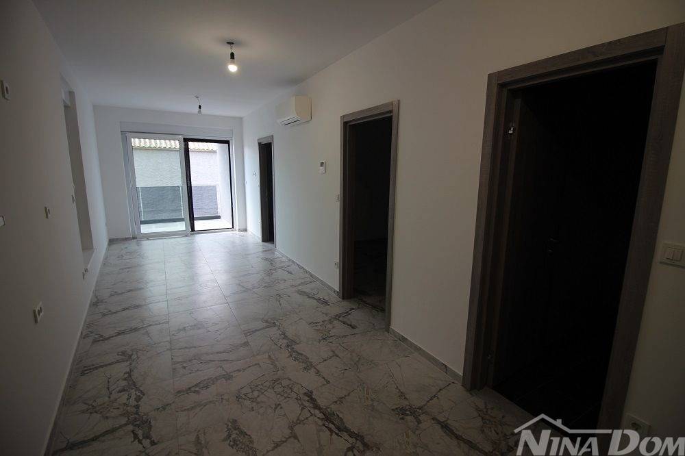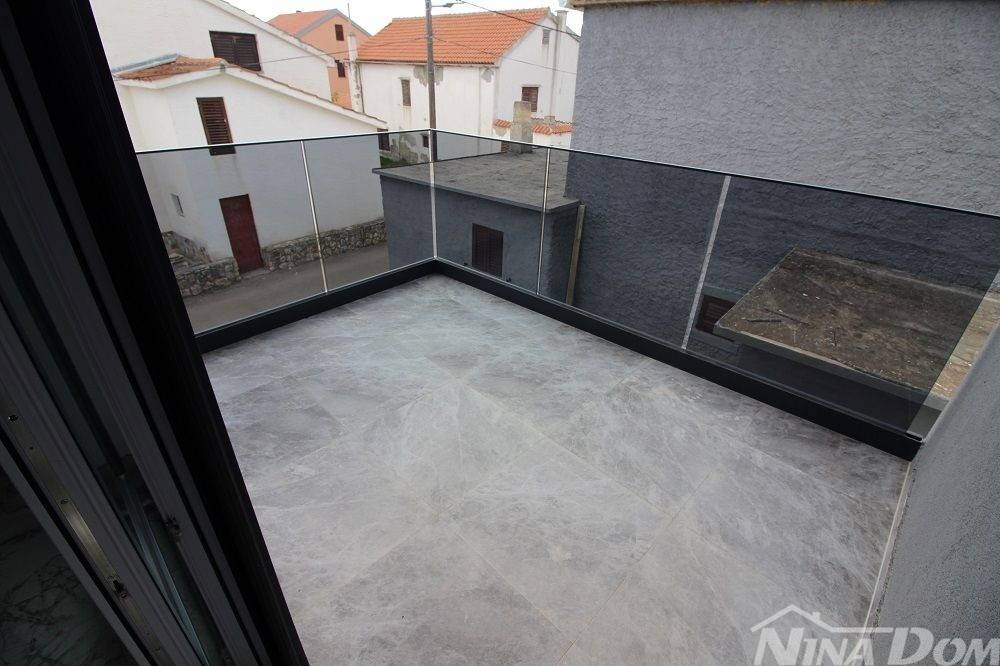 Novogradnja, apartman na katu zgrade s krovnom terasom od ukupno 4 stambene jedinice.sastoji se od: dnevnog boravka,kuhinje i blagovaonice, dvije spavaće sobe, kupaone te loggie i velikom krovnom terasom 54,40 m2 Apartman se nalazi u centru otoka Vira udaljen od gradske plaže Jadro 600 metara od plaže na sjevernoj strani Lučica 700 metara. U fazi završnih radova, spojeni su na infrastrukturu ( gradska voda i kanalizacija) Predviđeni rok kompletnog uređenja do tur. sezone 2024 godine.