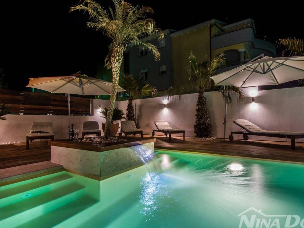 Prodaje se luksuzna villa koja se nalazi na samome ulazu u mjesto Diklo.Mirna i tiha lokacija,blizina mora a sakrivena od pogleda i ljetne buke.Kuća je rađena za sebe, a ne za daljnju preprodaju ,tako da je prilikom gradnje posvećena maksimalna pažnja svakome detalju.Vrhunski materijali što je vidljivo i iz samog okoliša i interijera objekta.Sastoji se od dva luksuzna dvosobna stana,dva jednosobna,dva studio apartmana,konobe,,podruma,crne kužine(ljetna kuhinja) i garaže.Kuća je trenutno u turističkom najmu tako da omogućava relativno brzi povrat investicije(ukoliko se kupuje sa tim ciljem).