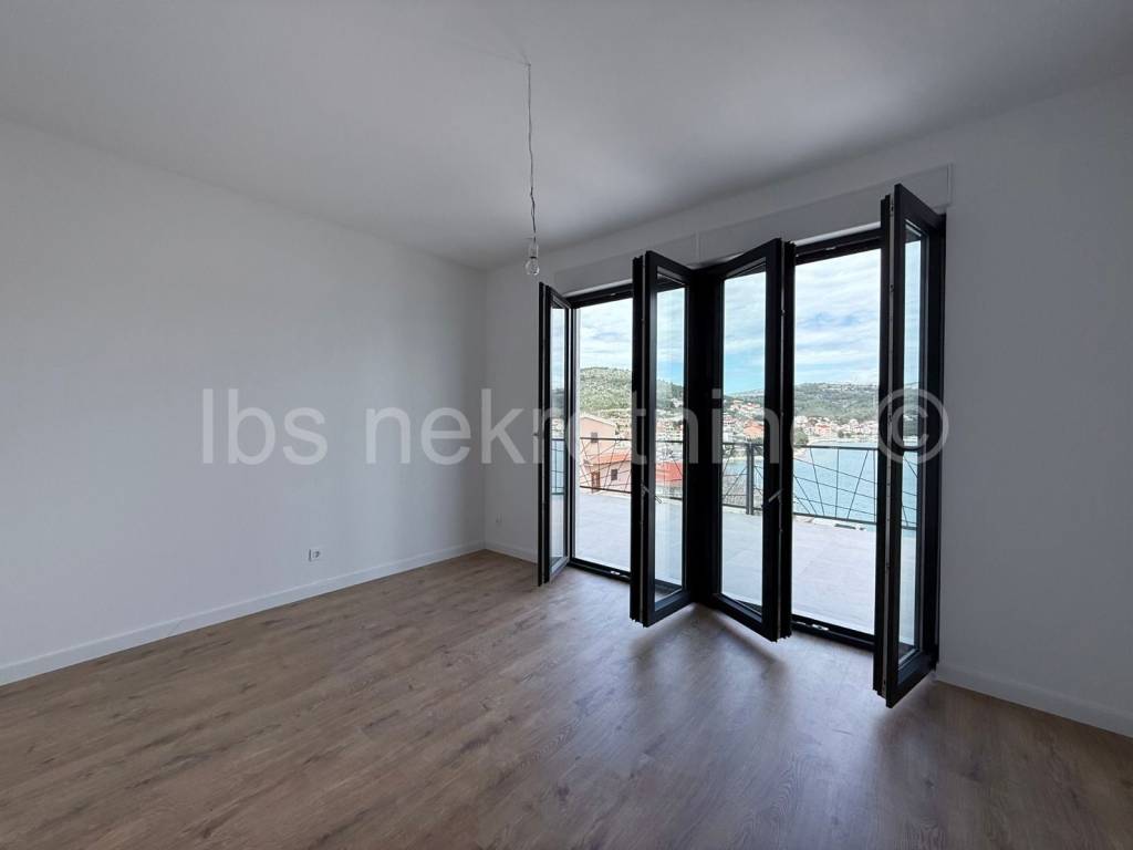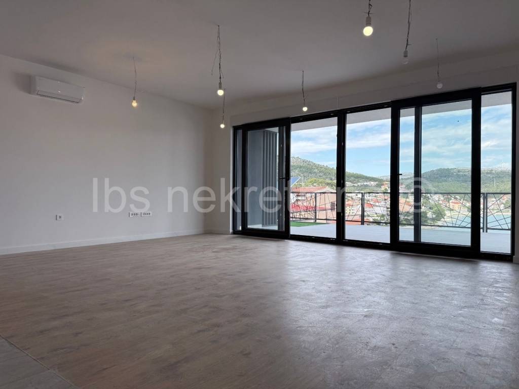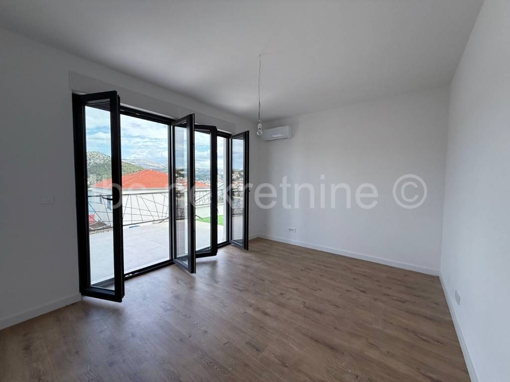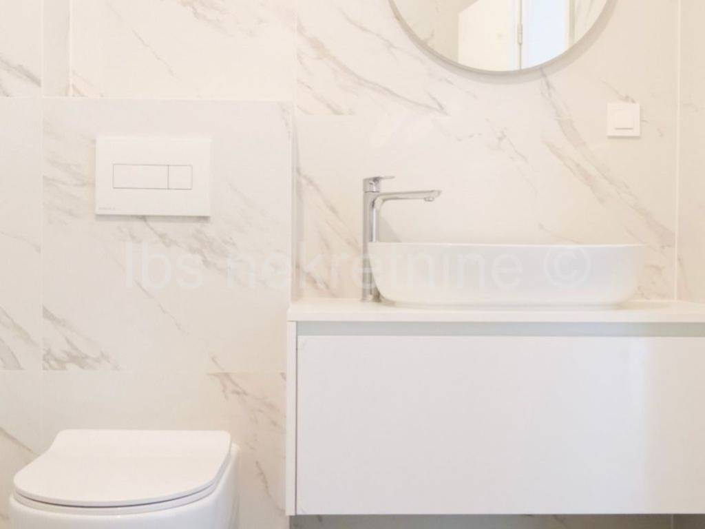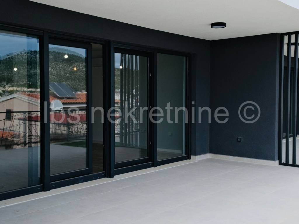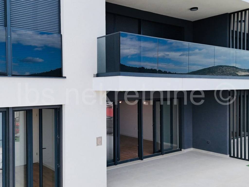 For sale apartment in a new building in Marina near Trogir. The building with modern apartments, spacious gardens and a luxurious roof terrace with a swimming pool, provides everything you need for a comfortable and relaxing life. The proximity of the beach and the beautiful sea view further contribute to the attractiveness of this property. Three bedroom apartment S2 is located on the ground floor of the building, with a total living area of 114.45 m and an associated garden of 84.00 m. The apartment includes: entrance hall, kitchen with dining room and living room, dressing room, toilet, two bathrooms with toilet, and three bedrooms. Information about the property and its viewing is available upon signing the Brokerage Agreement, which is the basis for all further procedures related to the purchase and sale of real estate, in accordance with the Personal Data Protection Act and the Real Estate Brokerage Act.