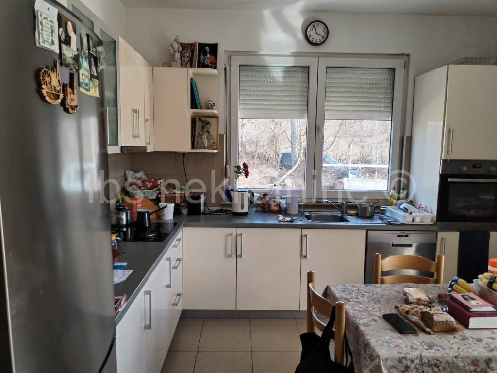 Izgrađena je na parceli od 790m2. Ukupna bruto površina objekta je 430 m2 a sastoji se od suterena, prizemlja prvog i drugog kata. Suteren je otvoren prostor sa wc om i kotlovnicom i trenutno se koristi kao spremište. Centralno grijanje je provedeno cijelom kućom. U prizemlju je prostrani dnevni boravak s blagavaonicom i kuhinjom te wc. Na prvom katu su četri spavaće sobe svaka sa svojim wc-om. Na drugom katu u naravi visoko potkrovlje je prostrani otvoreni prostor sa jednom spavaćom sobom i wc-om. Vertikalna komunikacija u objektu osigurana putem lifta i stubišta.