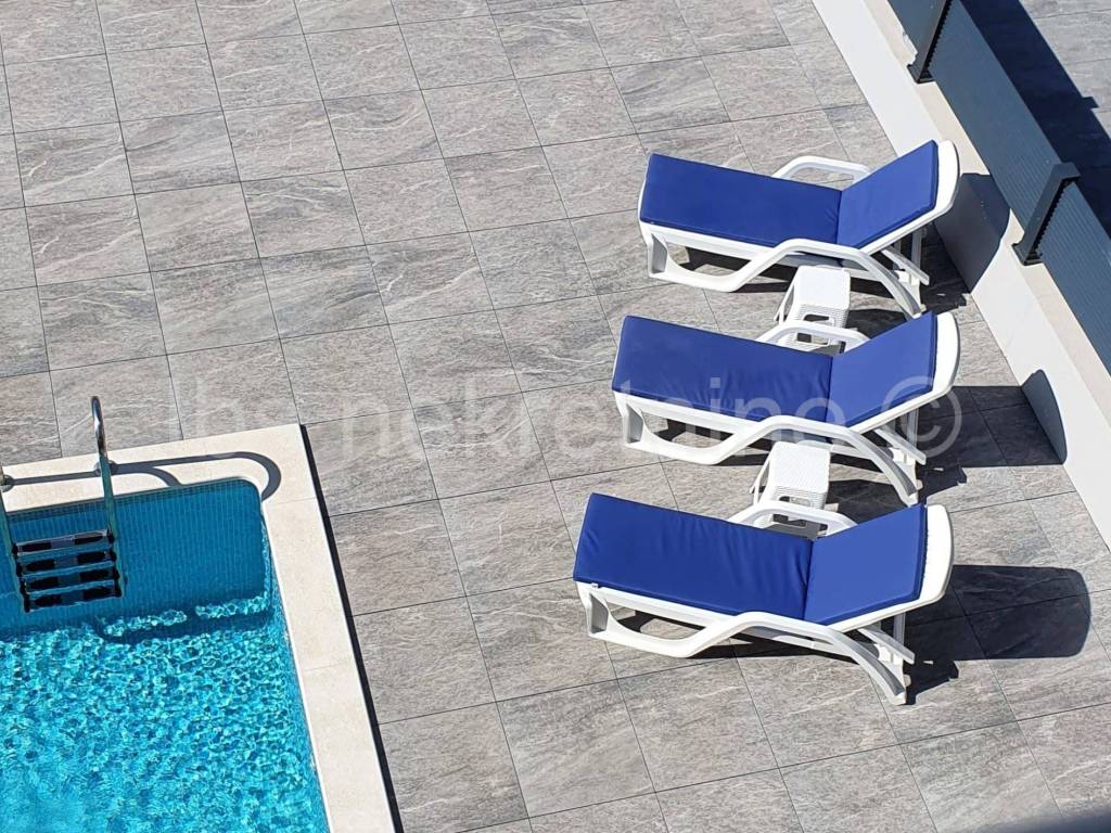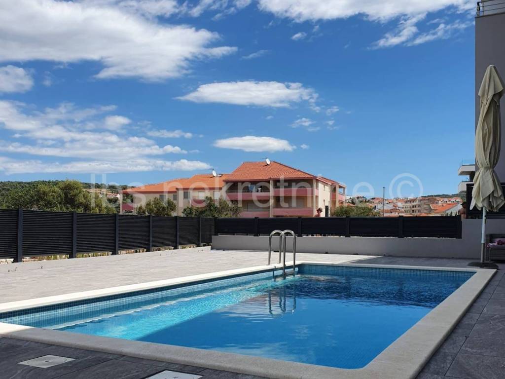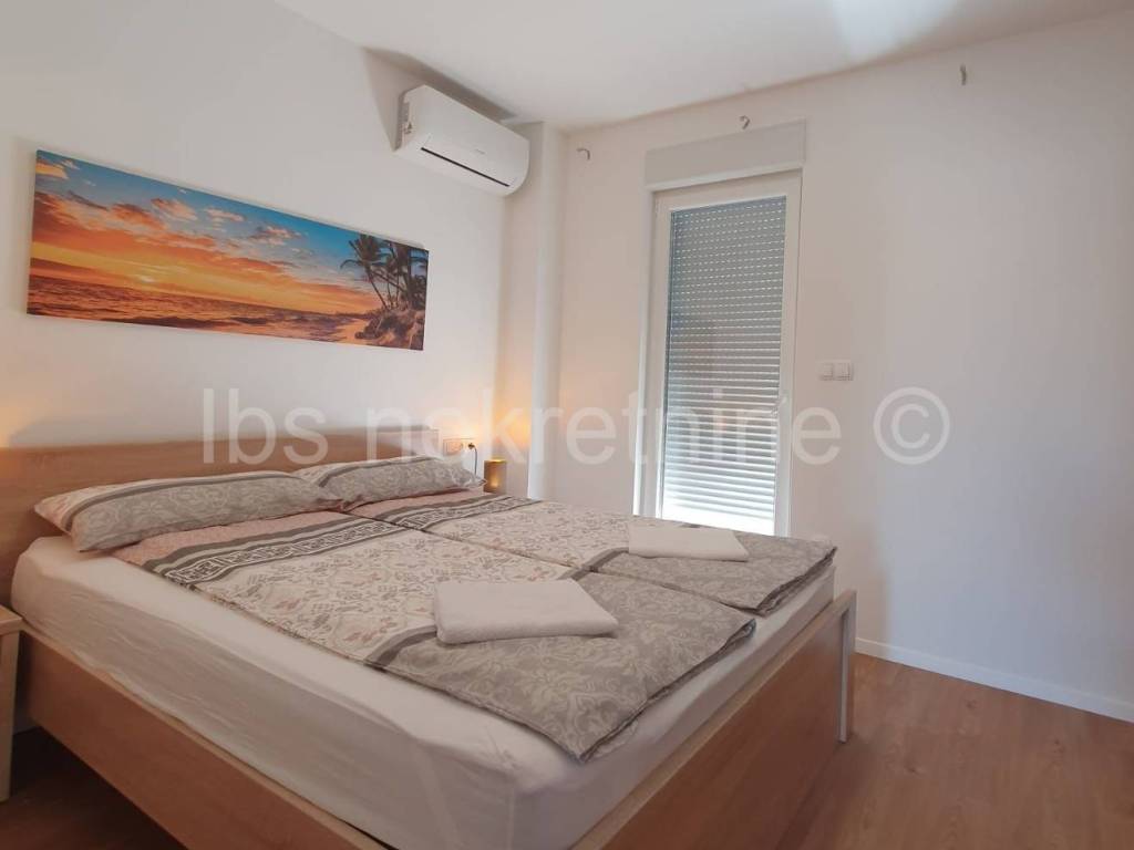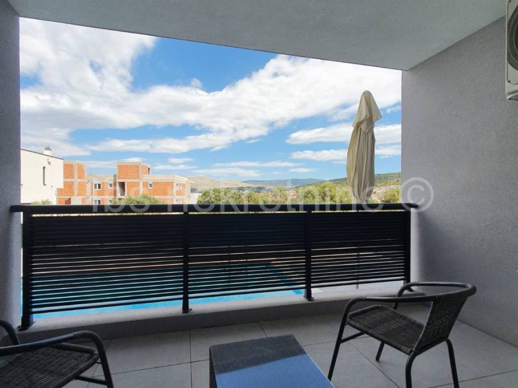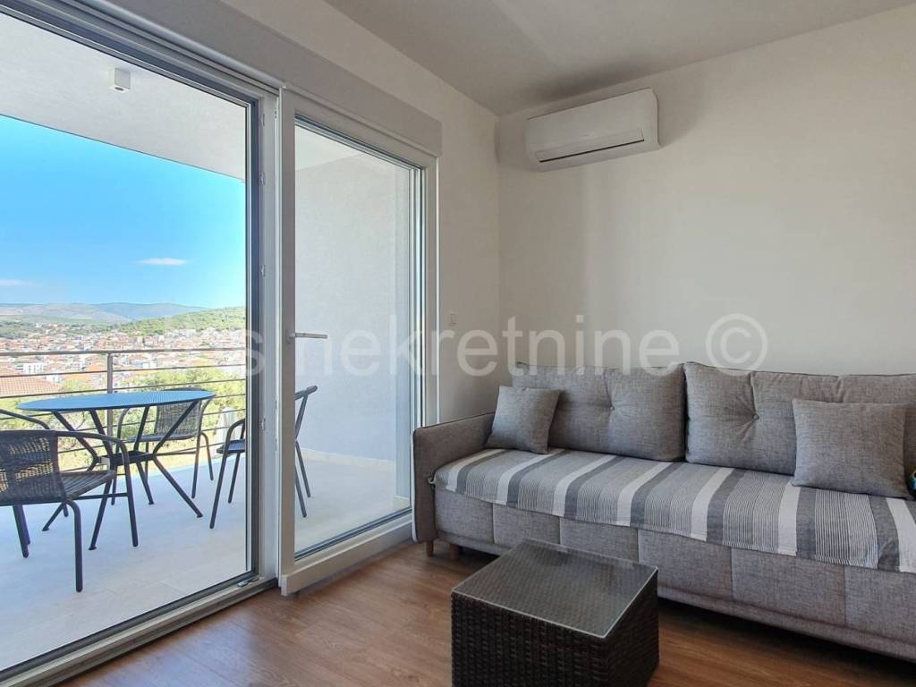 Posredujemo pri prodaji namještenog dvoetažnog stana na Čiovu u Okrug Gornji. Stan se nalazi u manjoj stambenoj zgradi s ukupno četiri stana. Ukupna površina stana je 75m2 podijeljena na dvije etaže koje su povezane unutarnjim stepenicama. Stan ima svoj ulaz koji je u razini parkirališta. Prizemlje se sastoji od kuhinje, dnevnog boravka s blagovaonicom,hodnika, kupatila i balkona. Drugi tj spavaći dio stana se nalazi u polusuterenu i sastoji se od hodnika, dvije spavaće sobe, kupatila i dva balkona. Svakom stanu pripada jedno nenatkriveno parkirno mjesto. Zgradi pripada i jedan bazen koji je na korištenje svim stanarima zgrade. Centar mjesta s svim potrebnim sadržajima je udaljen 200m kao i sama gradska plaža. Udaljenost do Trogira je oko 5km, Aerodrom 8km. Susjedstvo je mirno i idealno za odmor. Razgledavanje nekretnine je moguće tek nakon potpisivanja Agencijskog ugovora o posredovanju, a u skladu s Zakonom o prometu s nekretninama i Zakonom o zaštiti osobnih podataka. Agencijska provizija iznosi 3%