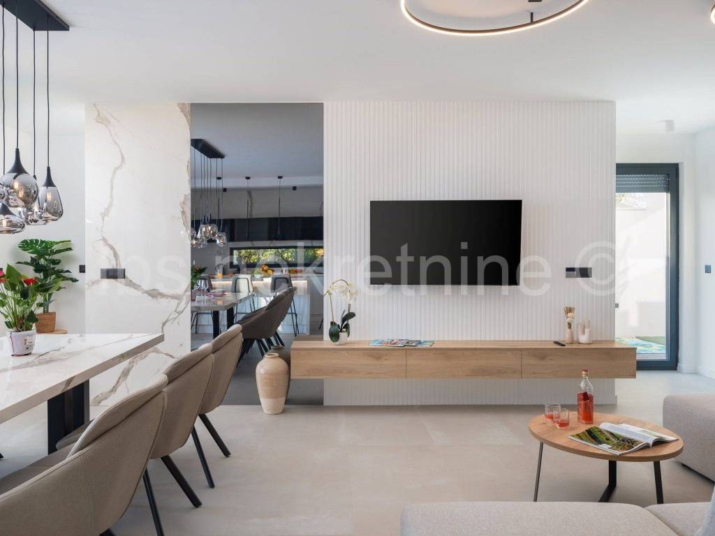 The villa is fully equipped with designer furniture, appliances, air conditioning, underfloor heating, high-quality aluminum windows, high-class ceramics.