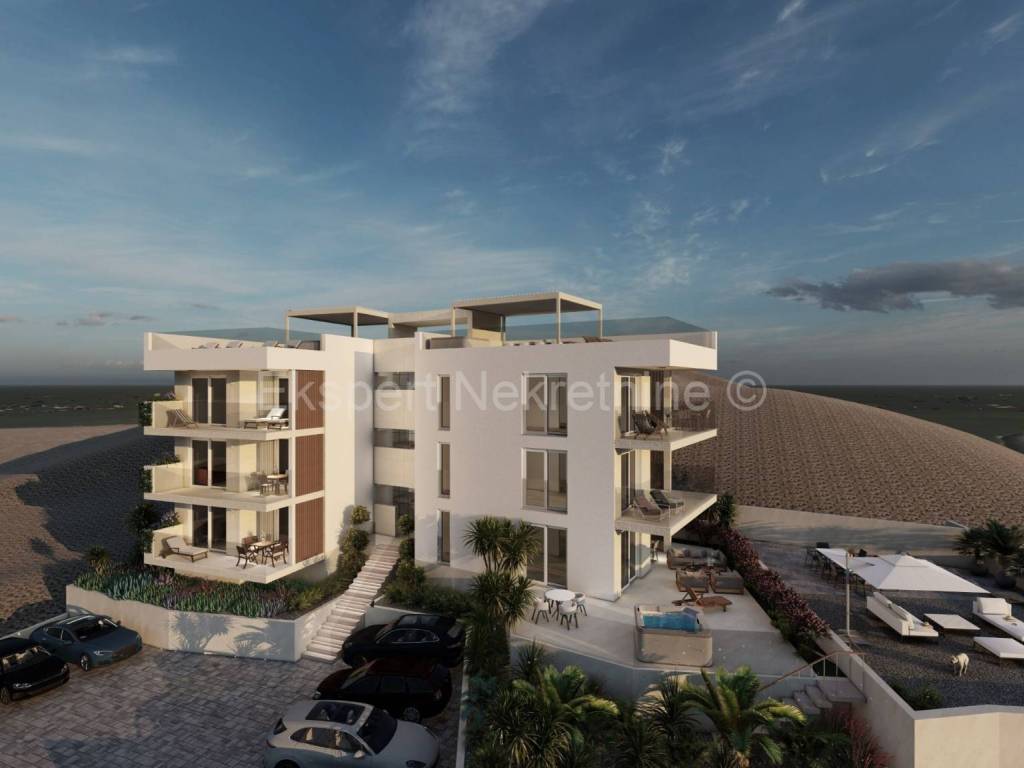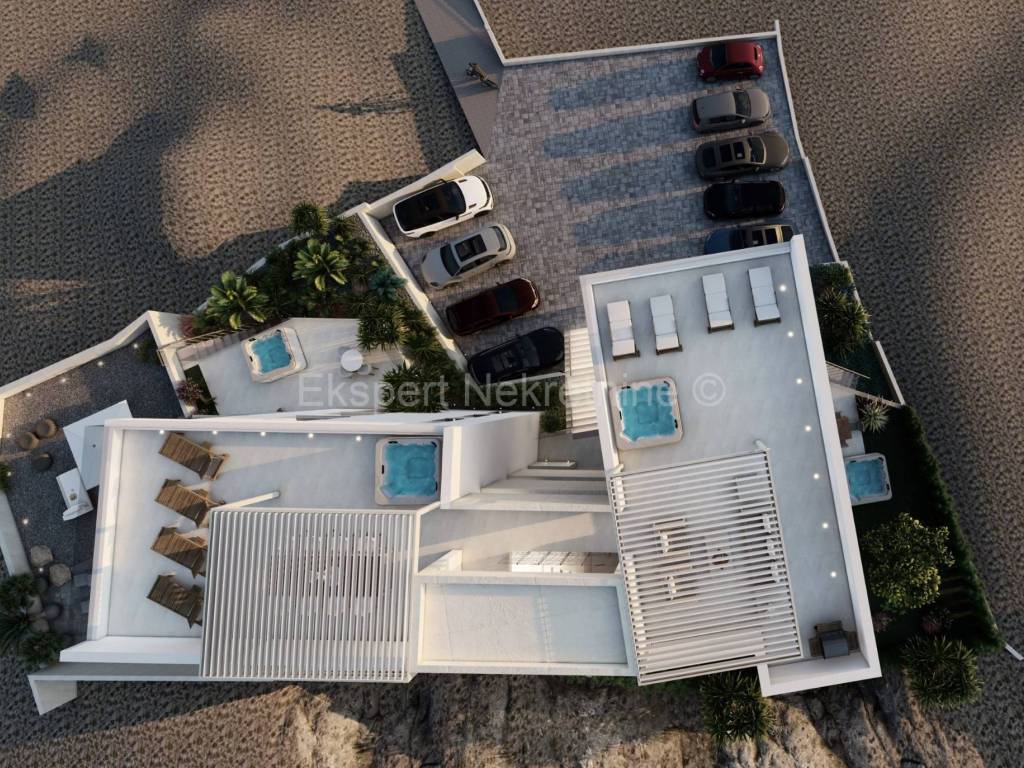 The apartment will be equipped with high-quality large-format tiles, electric shutters, large ALU fixed flush walls (floor level), underfloor heating in the bathroom, each room will have its own air conditioning (Daikin brand), the room doors will be frameless and flush with the wall.