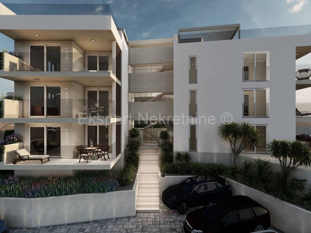 Čiovo, Okrug Gornji, two-bedroom apartment 70.7 m2 with sea view on the first floor of a new building only 200 m from the sea and the beach.