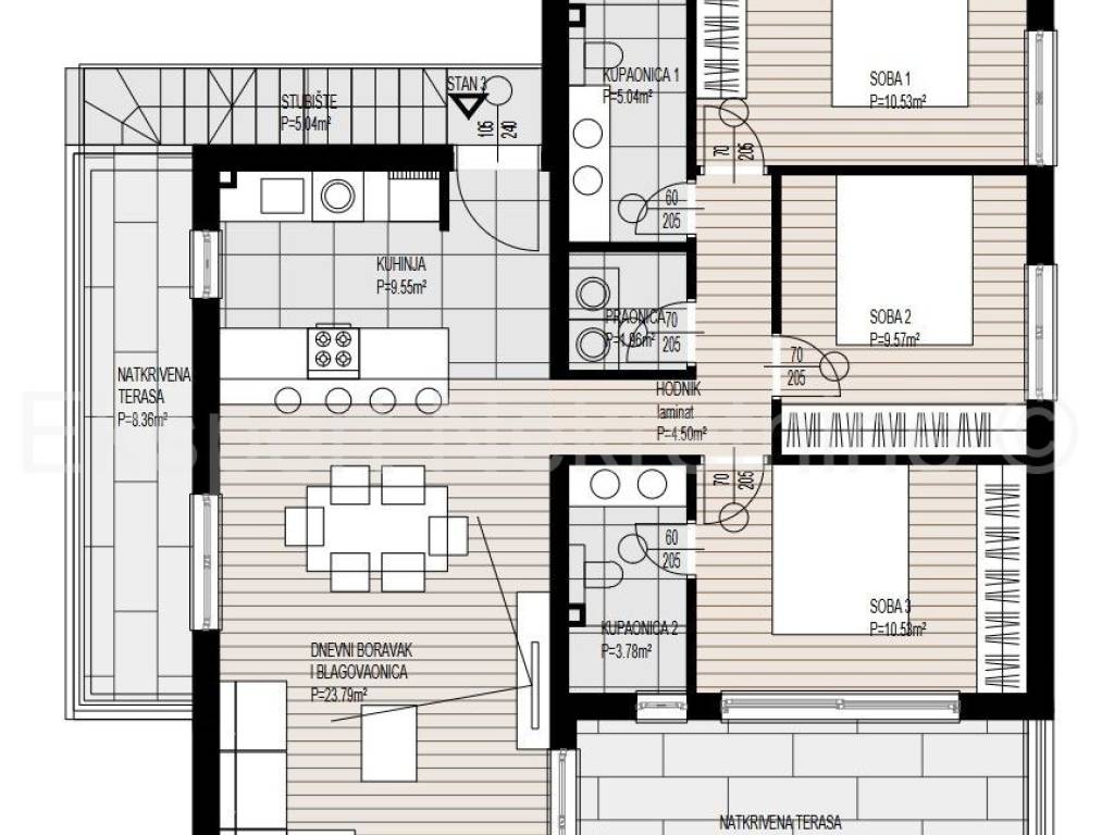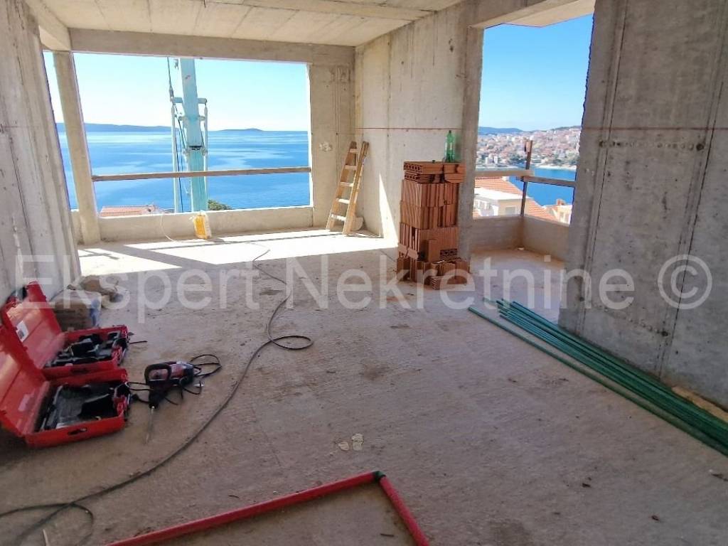 Ciovo, Okrug Gornji, Penthouse 79 m2 + Dachterrasse 123 m2 in einem neuen Gebäude mit nur 3 Wohnungen, nur 220 m vom Meer und Strand mit Panoramablick auf das Meer entfernt. Die Wohnung befindet sich im zweiten (letzten) Stock des Gebäudes, Ost-Süd-West-Nord. ist ausgerichtet und besteht aus drei Schlafzimmern, von denen eines über ein eigenes Badezimmer verfügt, Badezimmer, Flur, Küche mit Esszimmer und großem Wohnzimmer, Terrasse (20m2) und großer Dachterrasse mit herrlichem Panoramablick Blick auf das Meer und die Inseln. Die Wohnung bietet einen Panoramablick auf das Meer und die Inseln und verfügt über einen separaten Eingang. Die Wohnung verfügt außerdem über einen großen Außenparkplatz.Das Gebäude befindet sich in erstklassiger Lage auf der Südseite von Ciovo, nur 220 m vom Meer und Strand entfernt. Hochwertige Bauweise (hochwertige Keramik, Fußbodenheizung in der gesamten Wohnung, Klimaanlage in allen Zimmern, Moskitonetze, elektrische Rollläden, PVC-Tischlerei usw.). Das Gebäude befindet sich in der Phase der Rohbauarbeiten und die geplante Fertigstellung ist Ende 2025 .Bezahlung nach Bauabschnitten. Eigentumsverhältnisse in Ordnung.Für weitere Informationen wenden Sie sich bitte an die Agentur.