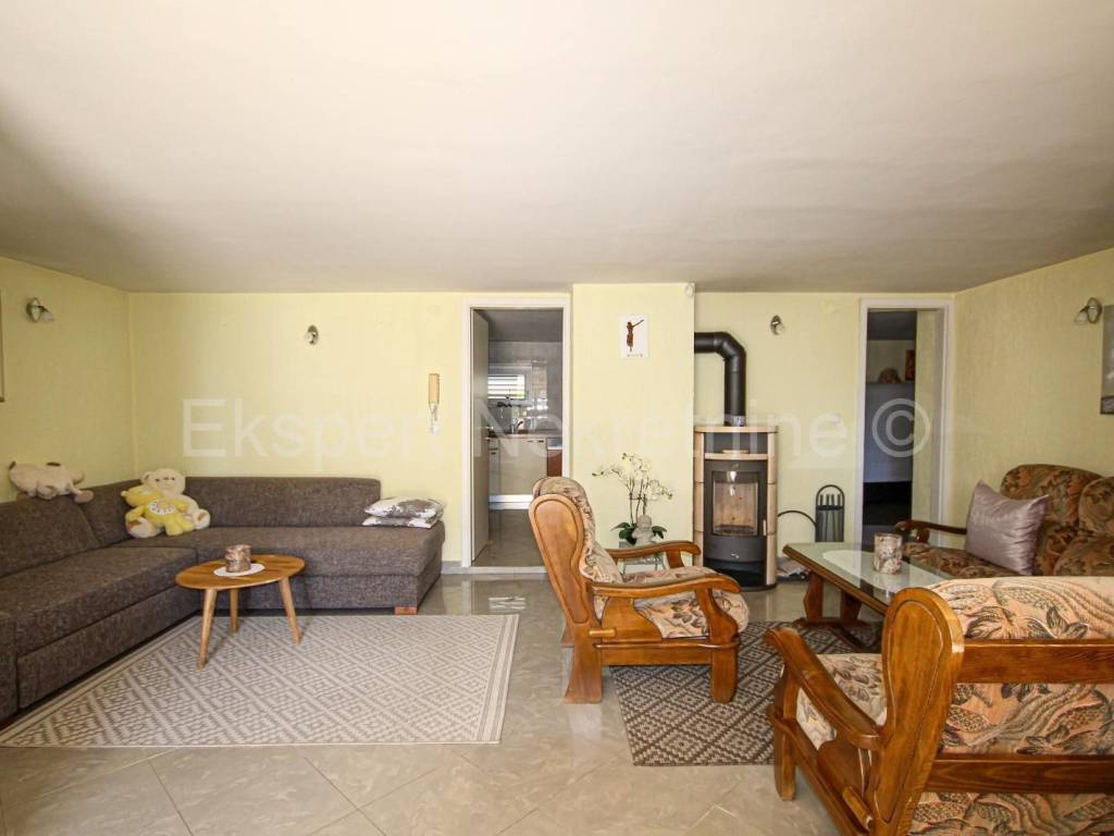 U prizemlju kuće se nalazi ostava i komin, garaža 21m2 te veliki vrt, s mogućnošću ugradnje bazena ili proširenja za parking mjesta.