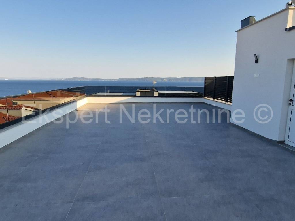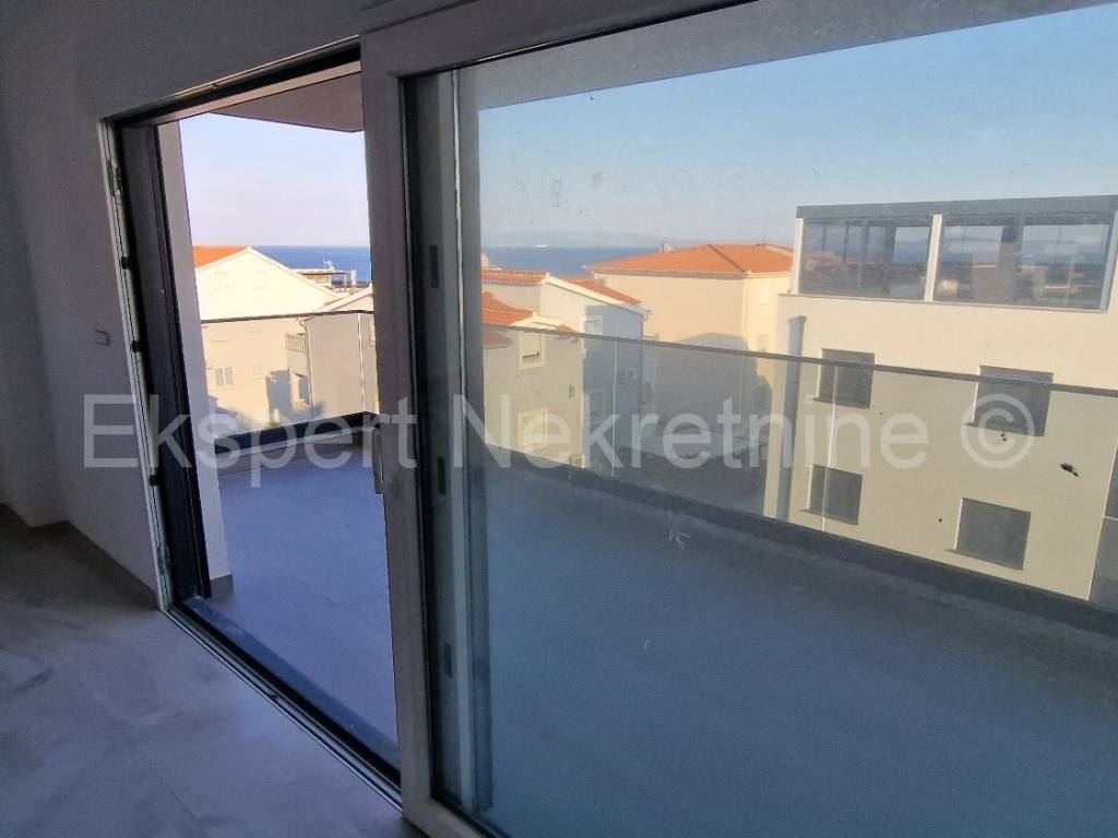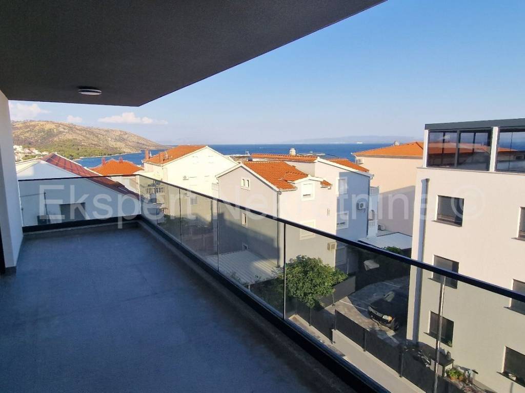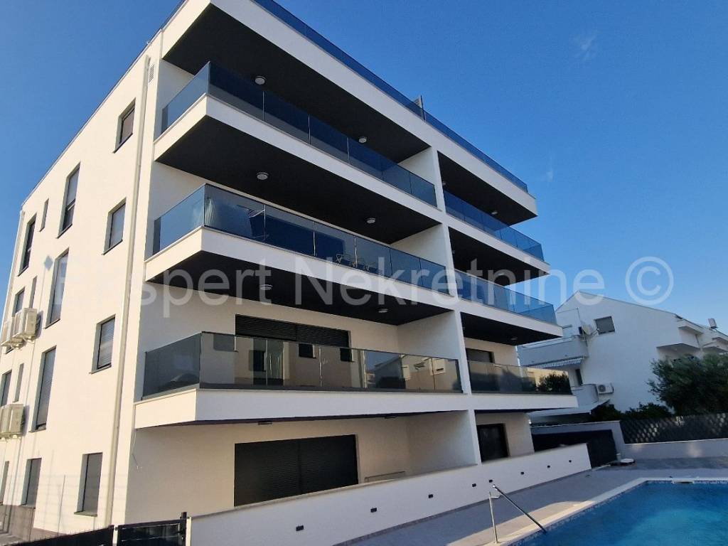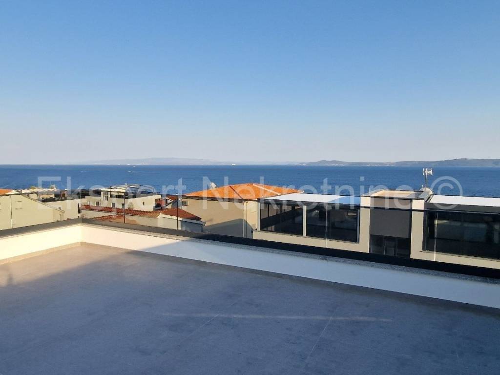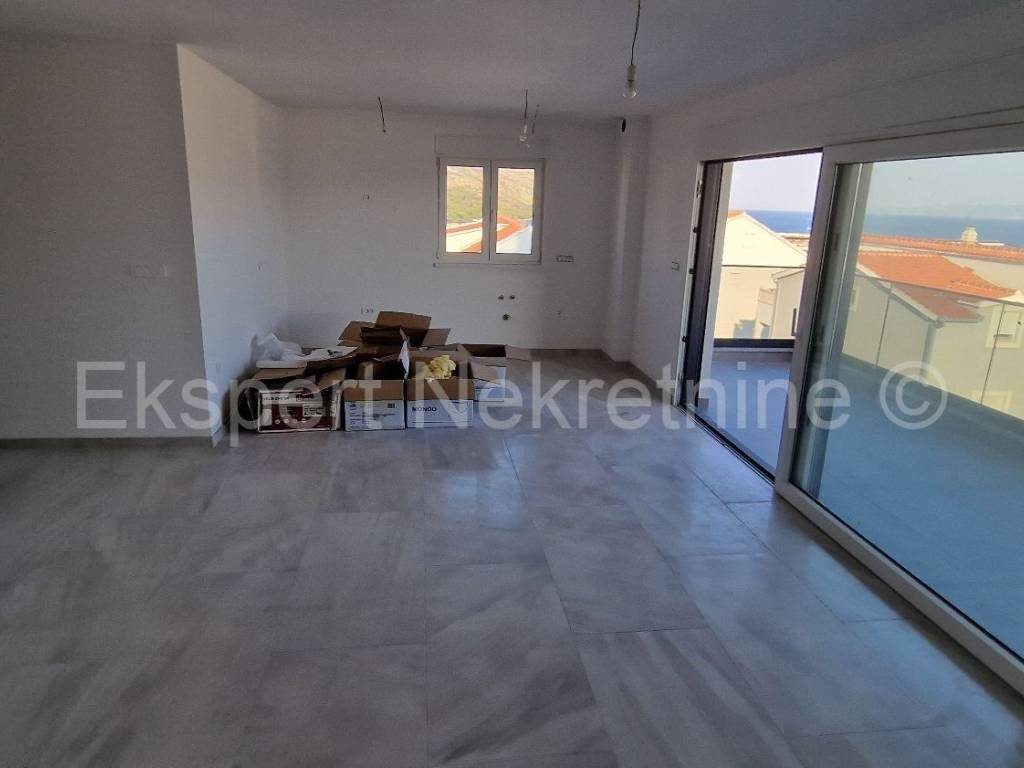 Čiovo, Okrug Gornji, comfortable two-bedroom apartment 73 m2 + roof terrace 74 m2 in a new building with a swimming pool in a smaller building with only 6 apartments. The apartment is on the second floor of the building, oriented north-west-south, and consists of two bedrooms, bathroom, hallway, pantry, kitchen with dining room and living room, a large balcony (13 m2) and a roof terrace of 73 m2 with an open view of the sea. The apartment also has one outdoor parking space.The building is located in a TOP location, 160 m from the sea and a large well-organized beach (copacabana) and also from all other amenities (shops, restaurants, cafes, etc.). Quality construction (quality ceramics, underfloor heating, air conditioning, mosquito nets, PVC joinery, etc.). The building is in the phase of starting rough construction works, and the planned completion is the summer of 2025. Ownership in order.For more information, contact the agency.