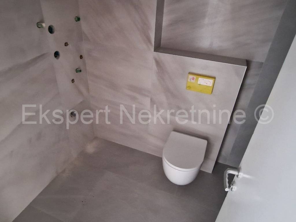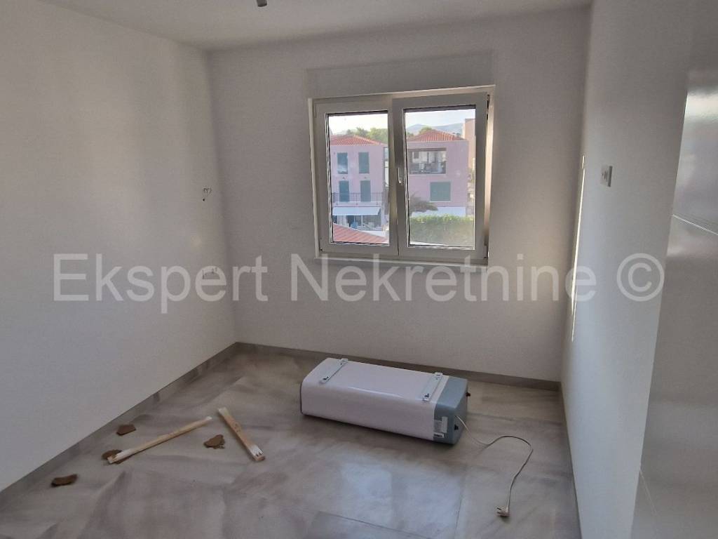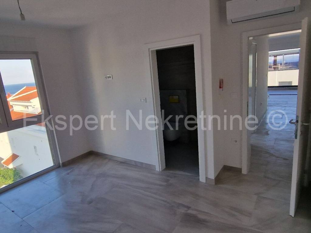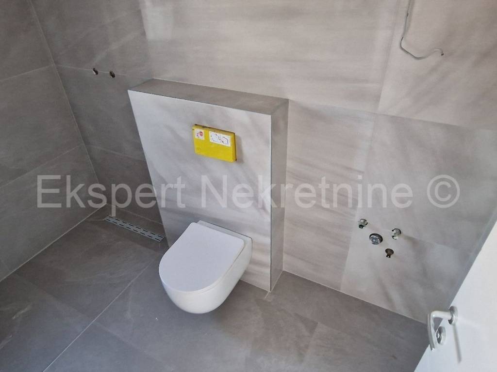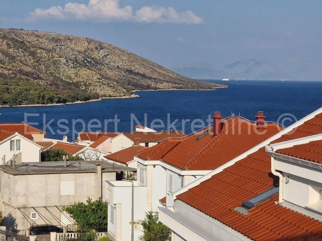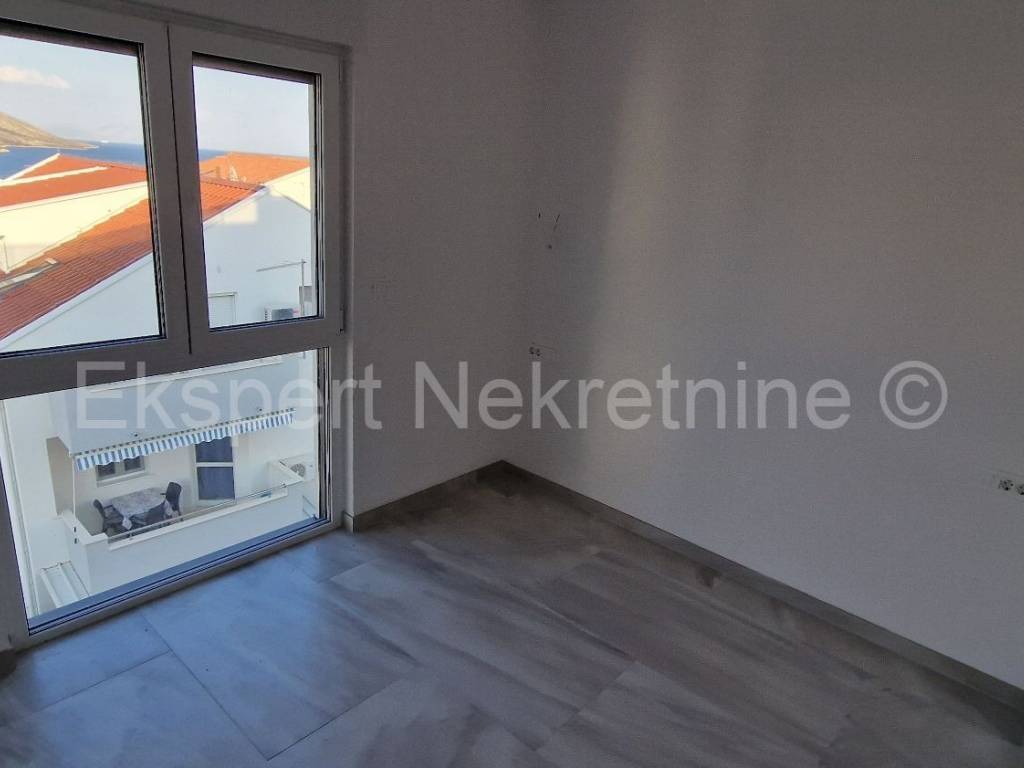 Čiovo, Okrug Gornji, comfortable two-bedroom apartment 73 m2 + roof terrace 74 m2 in a new building with a swimming pool in a smaller building with only 6 apartments. The apartment is on the second floor of the building, oriented north-west-south, and consists of two bedrooms, bathroom, hallway, pantry, kitchen with dining room and living room, a large balcony (13 m2) and a roof terrace of 73 m2 with an open view of the sea. The apartment also has one outdoor parking space.The building is located in a TOP location, 160 m from the sea and a large well-organized beach (copacabana) and also from all other amenities (shops, restaurants, cafes, etc.). Quality construction (quality ceramics, underfloor heating, air conditioning, mosquito nets, PVC joinery, etc.). The building is in the phase of starting rough construction works, and the planned completion is the summer of 2025. Ownership in order.For more information, contact the agency.