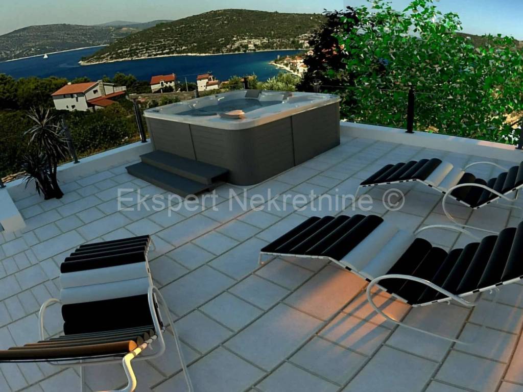 Trogir-Okolica, Drvenik Veliki, građevinsko zemljište 615 m2 udaljeno 200 m od mora. Struja i telefon u blizini, široki asfaltirani put, 5 minuta pješke od mora, 15min pješke od trajekta.