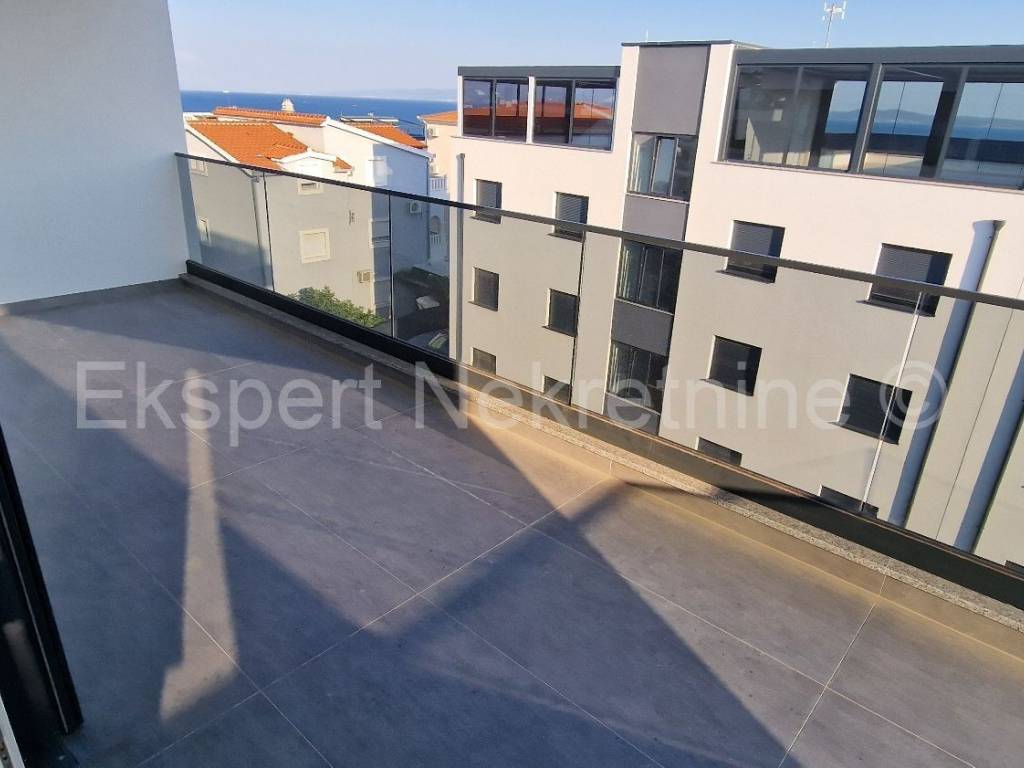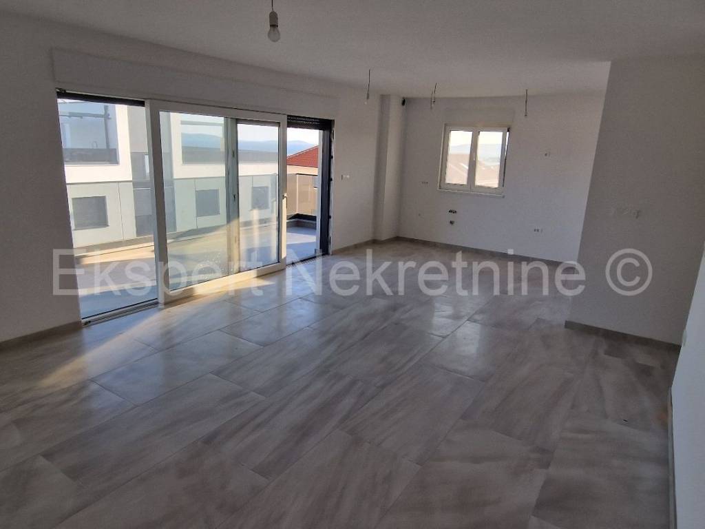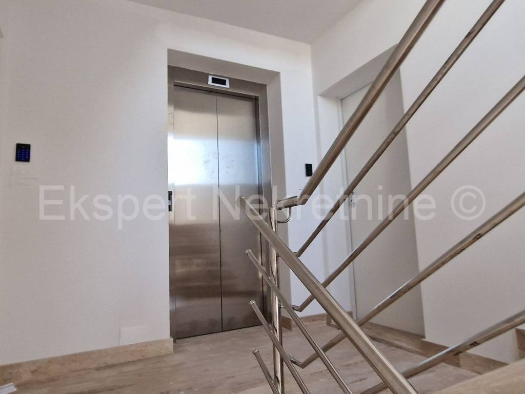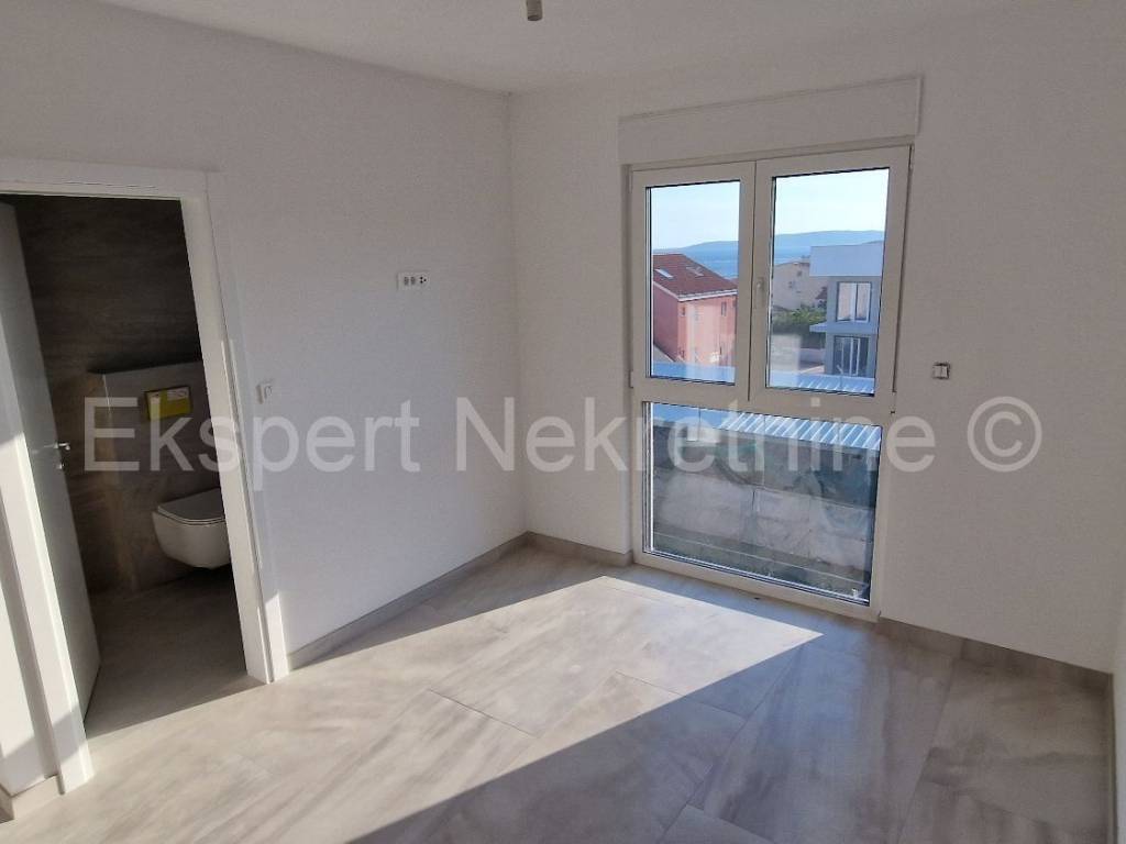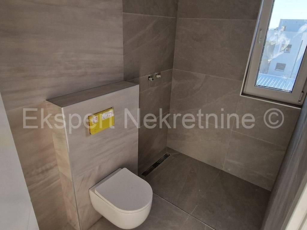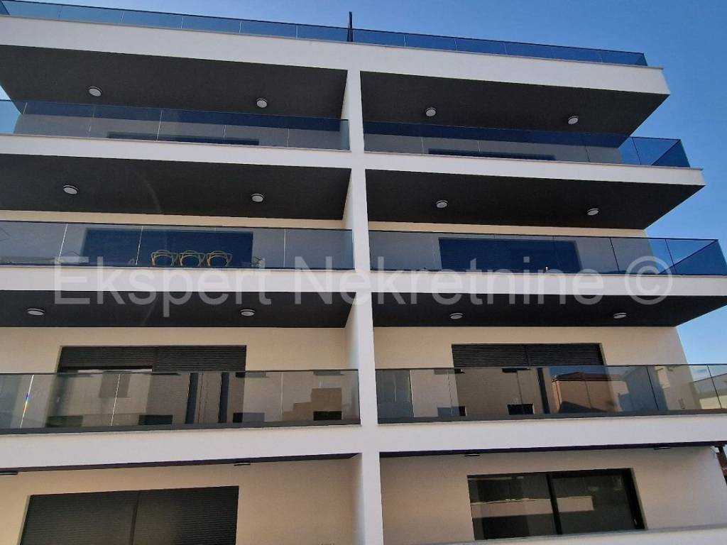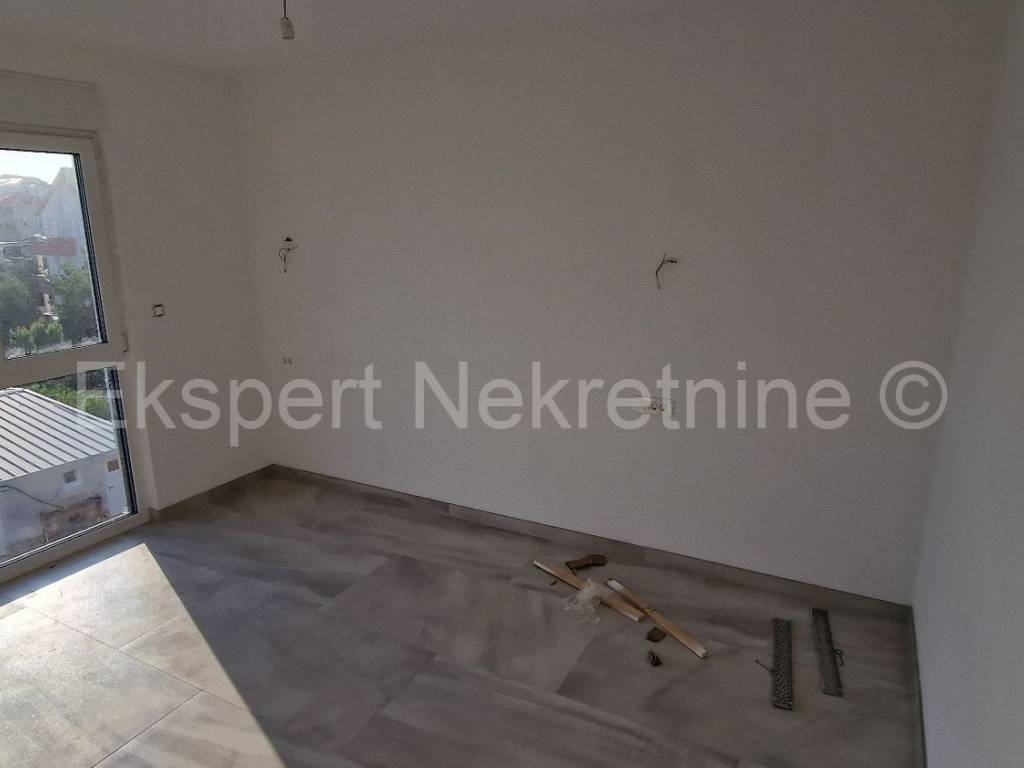 Čiovo, Okrug Gornji, comfortable two-bedroom apartment 73 m2 + roof terrace 74 m2 in a new building with a swimming pool in a smaller building with only 6 apartments. The apartment is on the second floor of the building, oriented north-west-south, and consists of two bedrooms, bathroom, hallway, pantry, kitchen with dining room and living room, a large balcony (13 m2) and a roof terrace of 73 m2 with an open view of the sea. The apartment also has one outdoor parking space.The building is located in a TOP location, 160 m from the sea and a large well-organized beach (copacabana) and also from all other amenities (shops, restaurants, cafes, etc.). Quality construction (quality ceramics, underfloor heating, air conditioning, mosquito nets, PVC joinery, etc.). The building is in the phase of starting rough construction works, and the planned completion is the summer of 2025. Ownership in order.For more information, contact the agency.