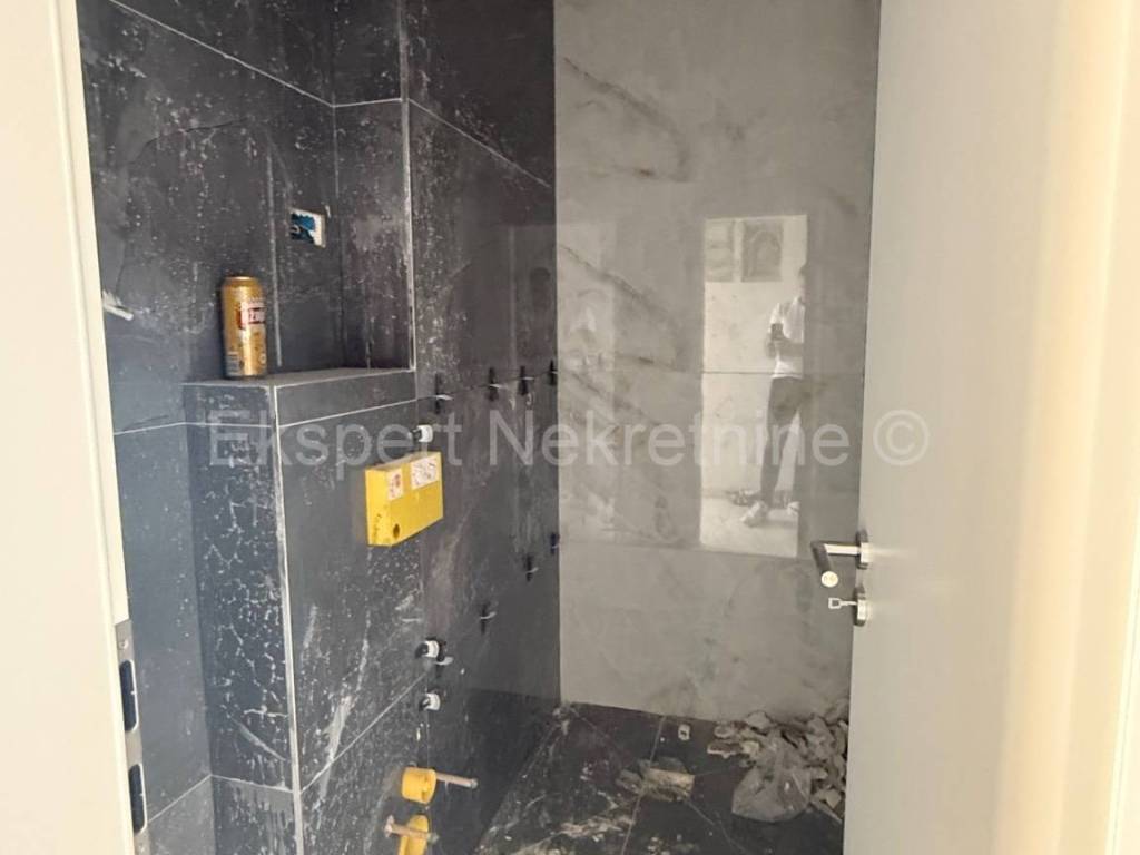 Stan ima 54.59m2 stambene površine,dvije spavaće sobe,predsoblje,dvije kupaone,ostavu,dnevni boravak s kuhinjom i blagovaonom te balkon 15m2.