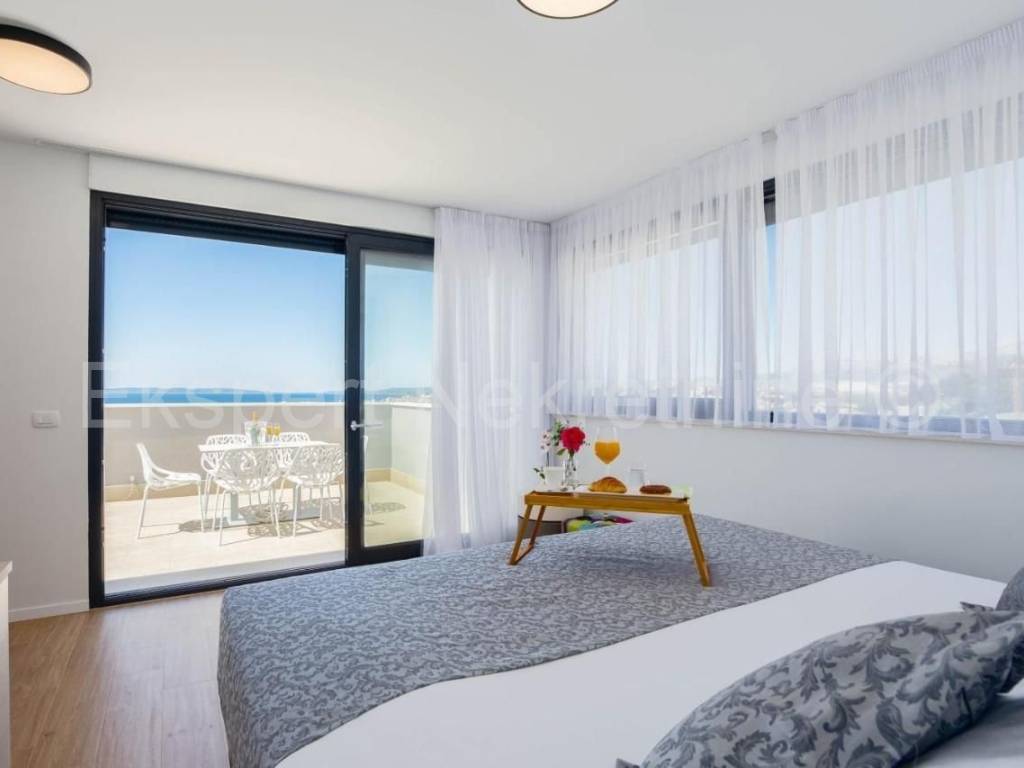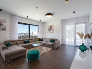 On the second floor, there is another residential unit, which is designed as a one-room apartment and has a bedroom, a living room with a kitchen and dining room, a bathroom and an exit to a large terrace of 37 m2 with a wonderful view of the sea.(The arrangement as well as the surfaces of the rooms are visible in the floor plans.)