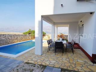 A holiday house with a swimming pool for sale in Ražanac, located in the first row to the sea (160 m away from the sea).