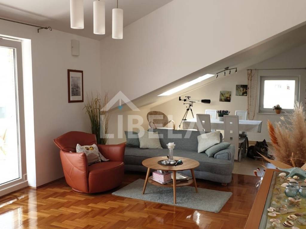 Prodaje se apartman u Novalji, naselje Gaj, penthouse od 80 m2 stambene površine, sa pogledom na more do kojeg je samo 150 m plaža.