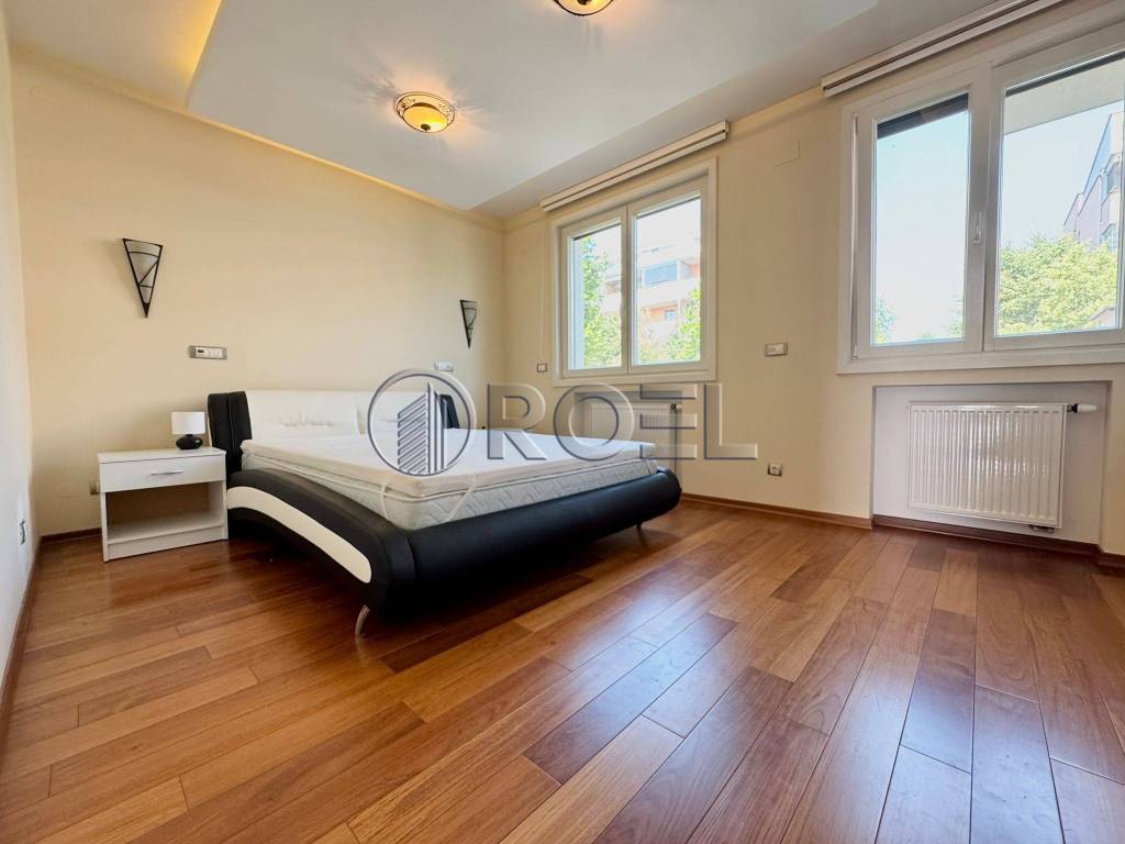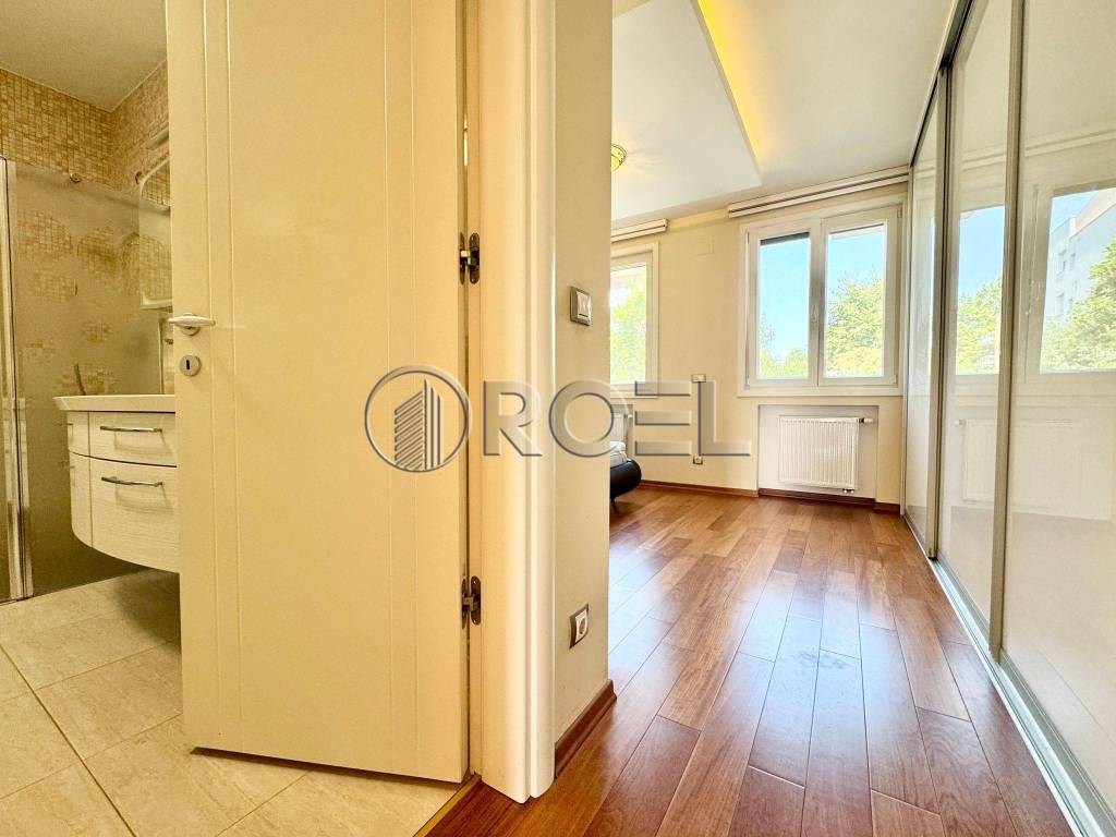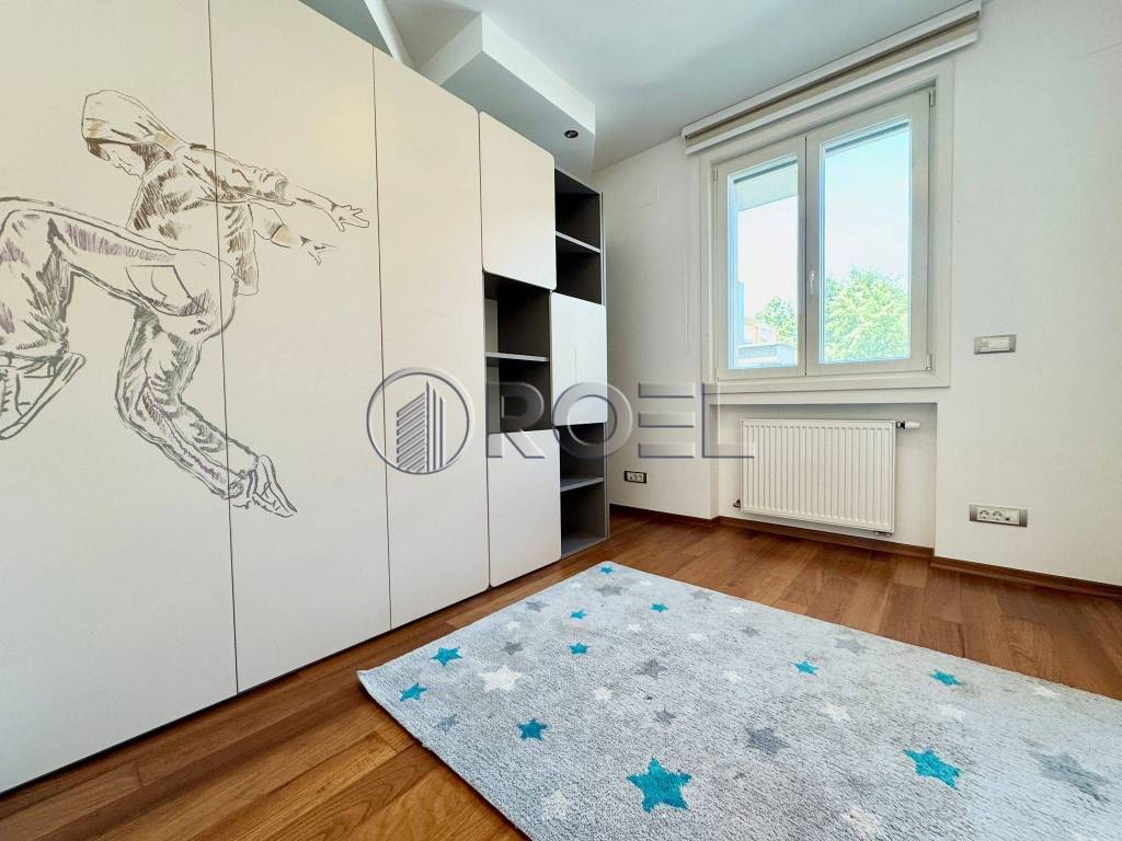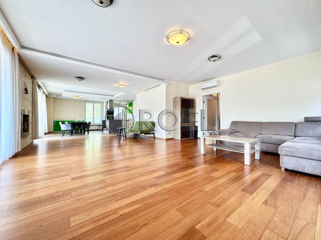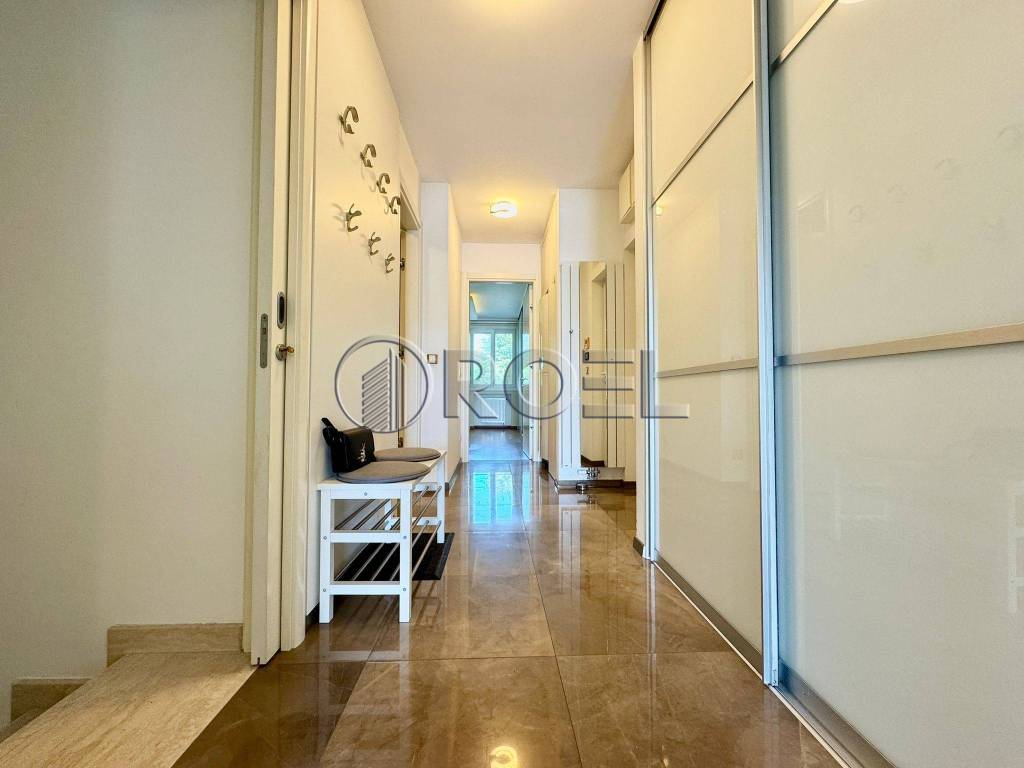 Jarun, prekrasno uređen i djelomično namješten dvoetažan peterosoban stan zatvorene netto korisne površine 270 m2 u visokom prizemlju novije gradnje.