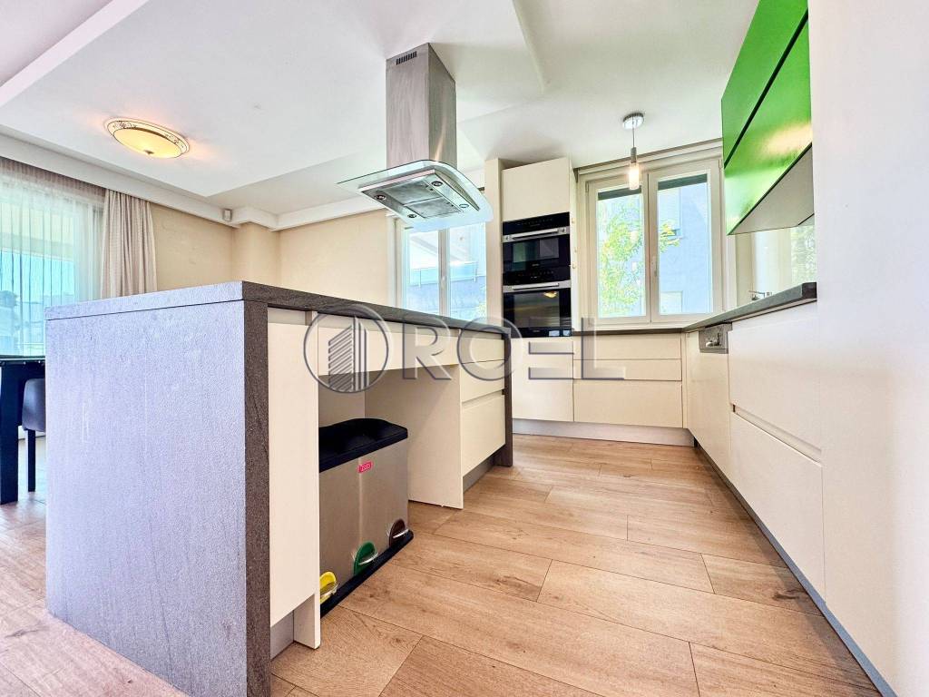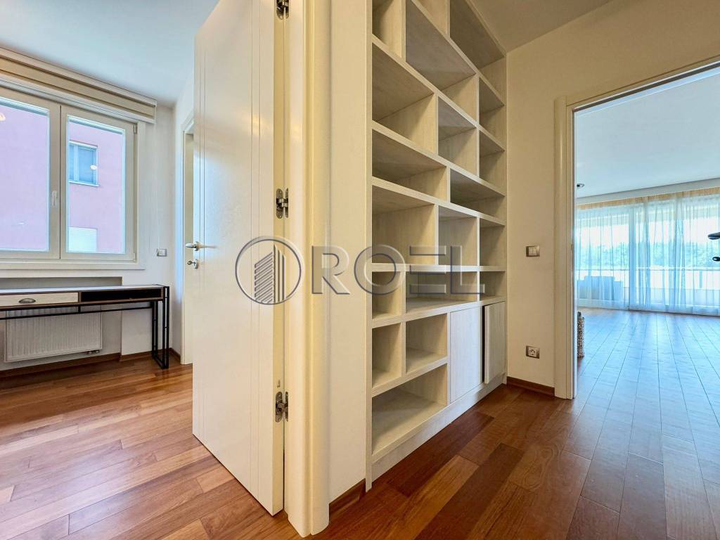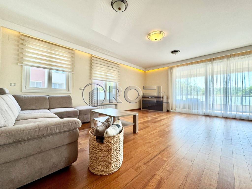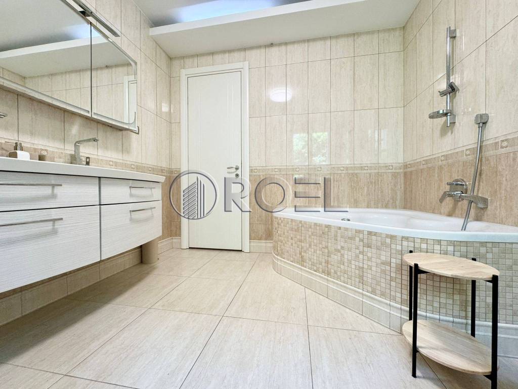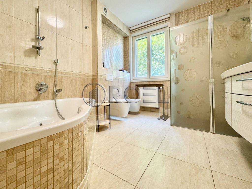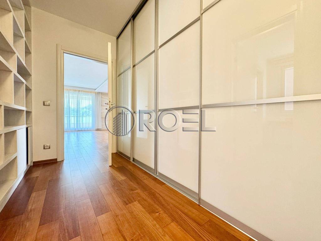 Jarun, prekrasno uređen i djelomično namješten dvoetažan peterosoban stan zatvorene netto korisne površine 270 m2 u visokom prizemlju novije gradnje.