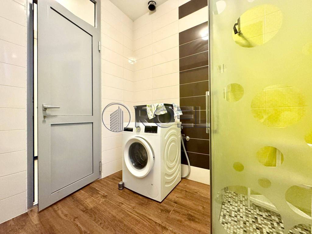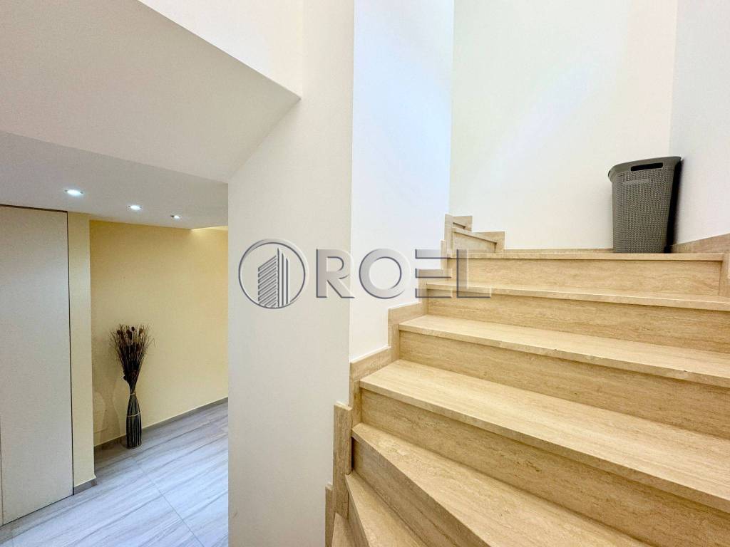 Sastoji se od prostranog dnevnog boravka s blagovaonicom i opremljenom kuhinjom, četiri spavaće sobe s ugradbenim ormarima, dvije kupaonice, toaleta te natkrivene terase s velikim vrtom. Donja etaža se sastoji od spremišta, kupaonice, manje sobice te open space prostora koji se može pretvorit u dnevni boravak, spavaću sobu ili gym.