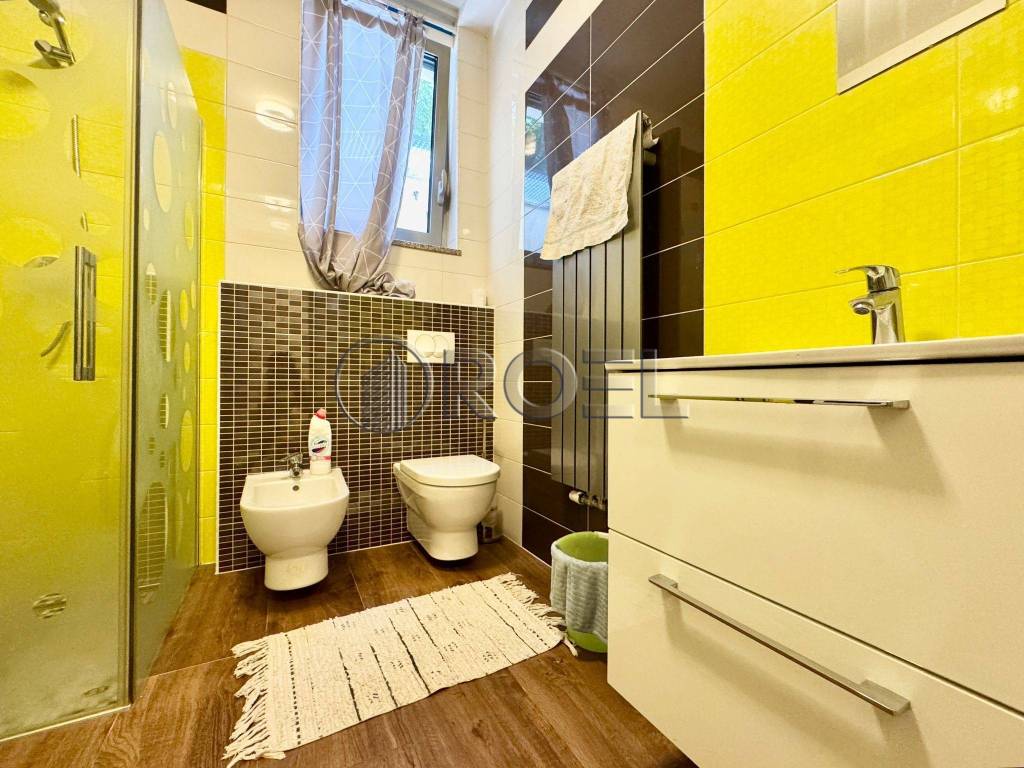 Stan je klimatiziran, grijanje etažno plinsko, orijentacija na četiri strane svijeta. Pripadajuće garažno parkirno mjesto iz kojeg se ulazi direktno u donju etažu stana.