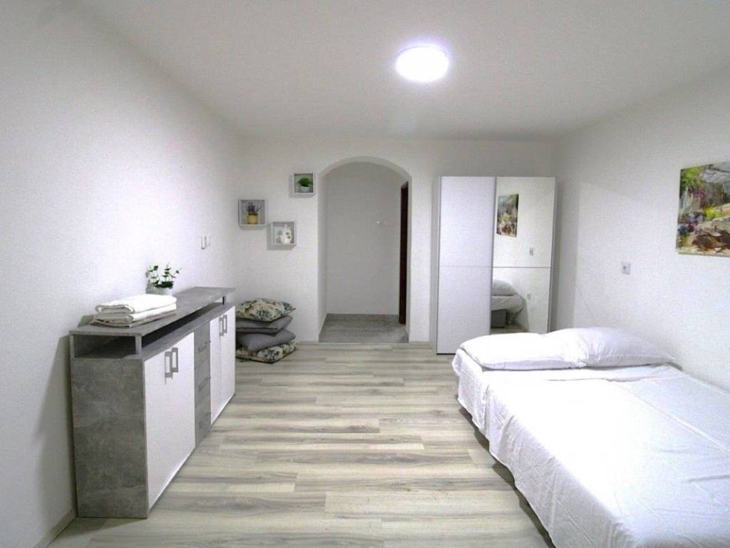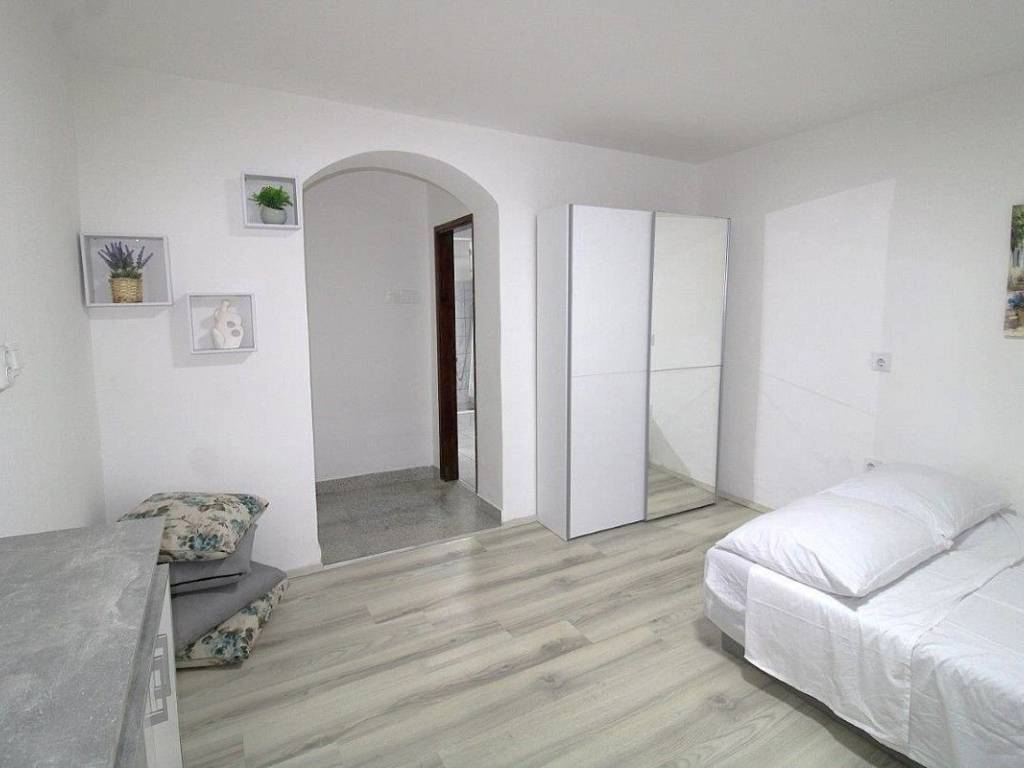 Apartment for sale in Poreč, only 850 m from the sea. This property is a great opportunity, located on the ground floor.The apartment has a surface area of 94 m, divided into 2 apartmentsand the layout includes for the smaller apartment; hallway, living room, bathroom and kitchenThe larger apartment consists of a hallway, kitchen and dining room, two bedrooms and a bathroom.The apartment is actually a large apartment of 94m2 divided into 2 smaller ones.With minor interventions, the apartment can be easily restored to its original condition.It has a part of the yard and one parking spaceThe location is very practical, considering the proximity of all essential amenities such as shops, cafes and other services, which are just a few steps away. An ideal opportunity for a pleasant life or an investment in tourism!