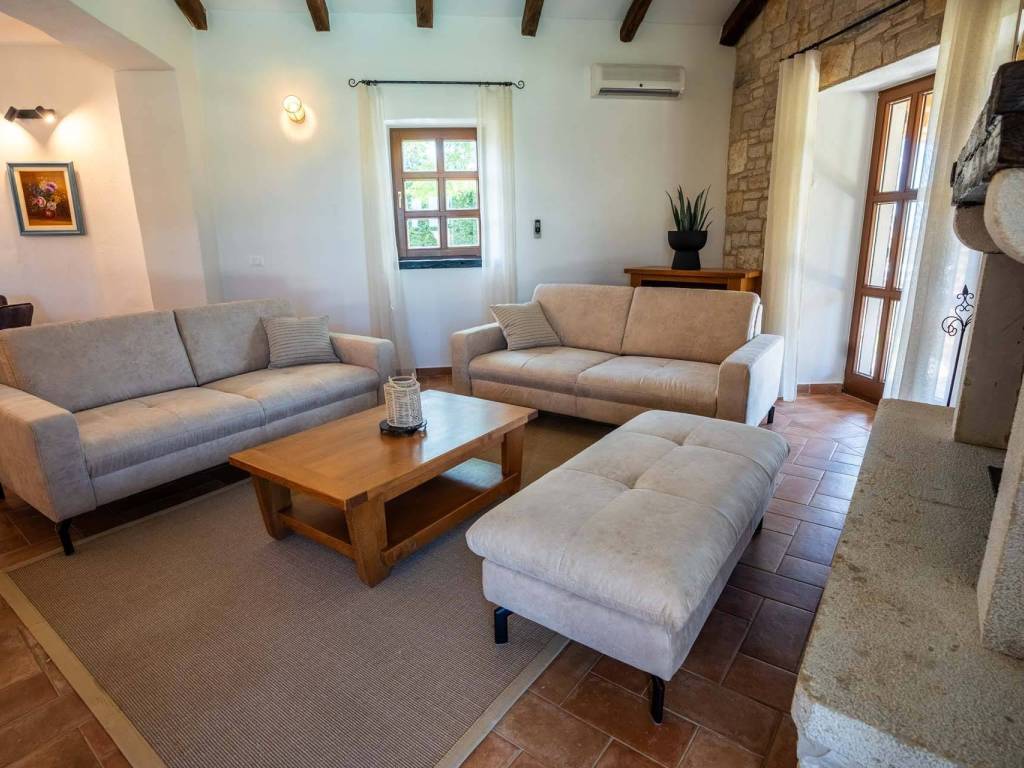 For sale - Rustic villa with sea view, Heraki (Sveti Lovreč)A charming rustic villa with an area of 257 m is for sale, located on a spacious plot of 1551 m, in the quiet village of Heraki, not far from Svetog Lovreč. This property is ideal for a peaceful family life, but also as an investment for tourism, given its attractive location and facilities.Schedule and content:Ground floor:Entrance hall, modern kitchen, spacious dining room with living room and fireplace, bedroom with private bathroom and access to the covered terrace - a perfect place to enjoy on warm days.Floor:Three bedrooms, one of which has its own bathroom, while the other two rooms use another bathroom. Two bedrooms have access to a balcony with a beautiful view of the sea and the old town.Equipment and additional benefits:Electric underfloor heating on the ground floor, radiators in the roomsFireplace in the living roomA landscaped garden with a swimming pool, ideal for relaxing and socializing, and two covered parking spaces.Privacy and quiet, yet close to the sea and urban amenitiesThis villa combines rustic charm with the comfort of modern living. Sea views, quality construction, functional layout and generous garden make it an exceptional opportunity on the market.