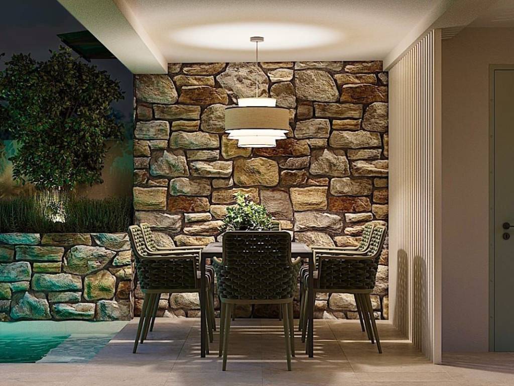 During the renovation, great care was taken to preserve the architectural integrity of the original stone building, emphasizing its rustic charm while incorporating modern amenities. The villa will also include a swimming pool and a sauna in the garden, creating an oasis of relaxation.The property is surrounded by a stone wall that ensures privacy and peace, while lush greenery will be planted as a natural hedge. The garden and ground floor will be decorated with indigenous Istrian stone, and the exterior joinery will be made of wood, emphasizing the harmonious blend of tradition and contemporary design.This villa is sold with a fitted kitchen.