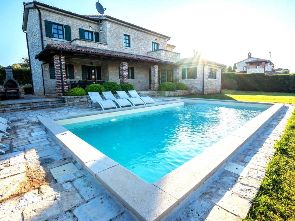 Stone villa with swimming pool Sveti Lovreč areaIn a quiet and picturesque part of Istria, near the historic town of Sveti Lovreč, is located this beautiful authentic stone villa with swimming pool. The villa offers a perfect blend of Istrian tradition and modern comfort, ideal for a family vacation or as an investment for tourist rental.The ground floor of the villa consists of an entrance hall, a spacious kitchen with dining area, a living room with a fireplace for a cozy atmosphere, a bedroom with a bathroom and a large covered terrace, perfect for outdoor dining.The upper floor consists of an entrance hall, three bedrooms with private bathrooms and two terraces.Private swimming pool surrounded by landscaped greeneryA fenced yard that provides privacy and peaceThe villa is built in a traditional Istrian style with authentic stone details, wooden beams and natural materials, while at the same time equipped with modern amenities for maximum comfort.Location: just a few minutes drive from Sveti Lovreč, and a short distance from the coast, attractions and gastronomic destinations.