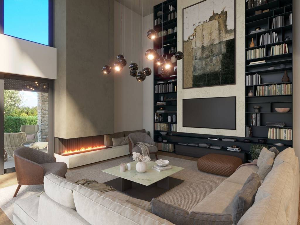The house is under construction. Ground floor entrance with a large vestibule and open stairs leading to the first floor, kitchen, dining room, living room with high ceiling and fireplace. Kitchen with an island. On the ground floor there is 1 bedroom with a bathroom and wardrobe and a toilet for guests. Upstairs there are 3 bedrooms with 3 bathrooms and a large terrace with a beautiful view of the sea.